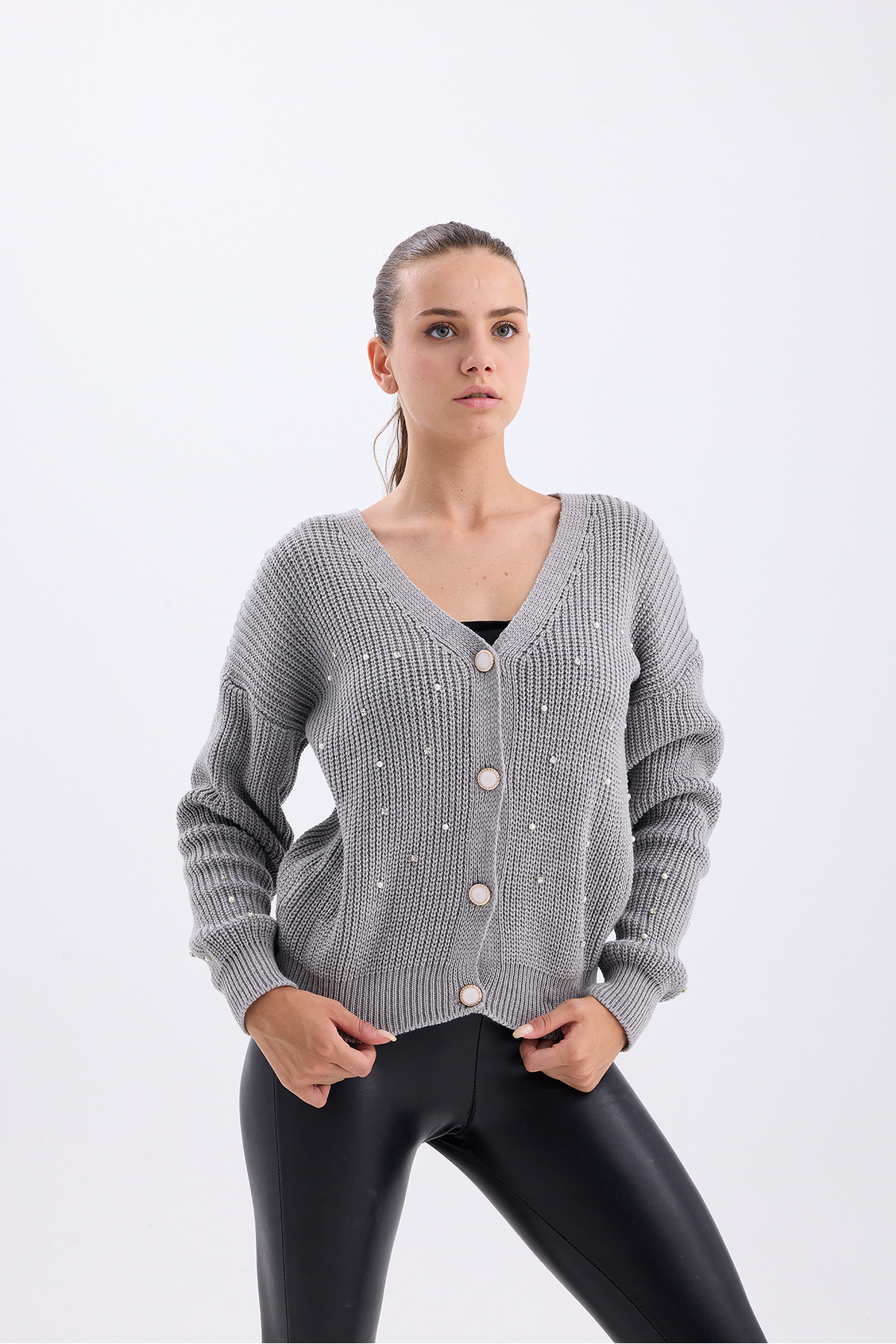 Kadın Düğmeli Hırka Triko Kadın Düğmeli Hırka Triko çinbon L