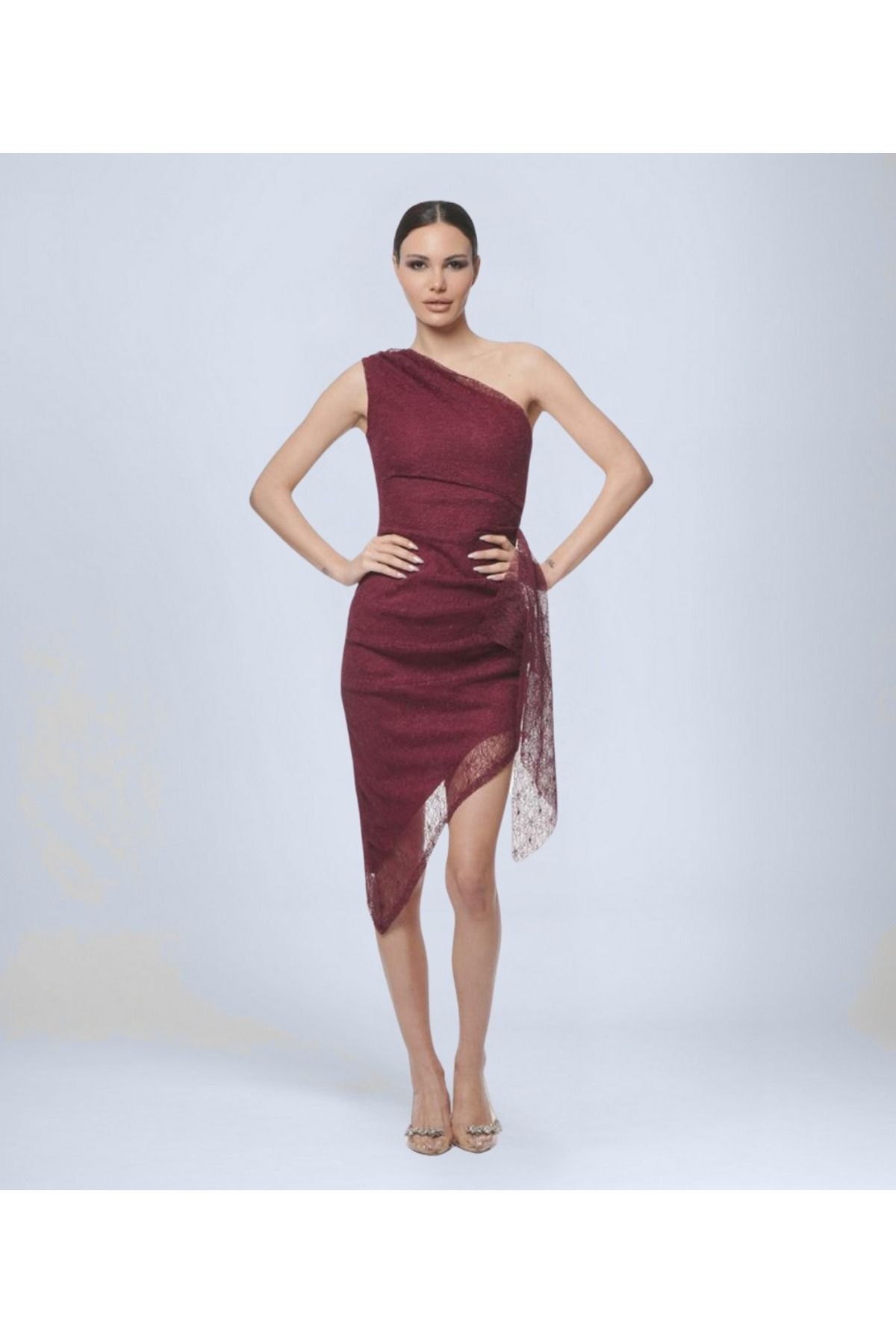 Tek Omuz Simli Dantel Abiye Tek Omuz Simli Dantel Abiye 39633 42