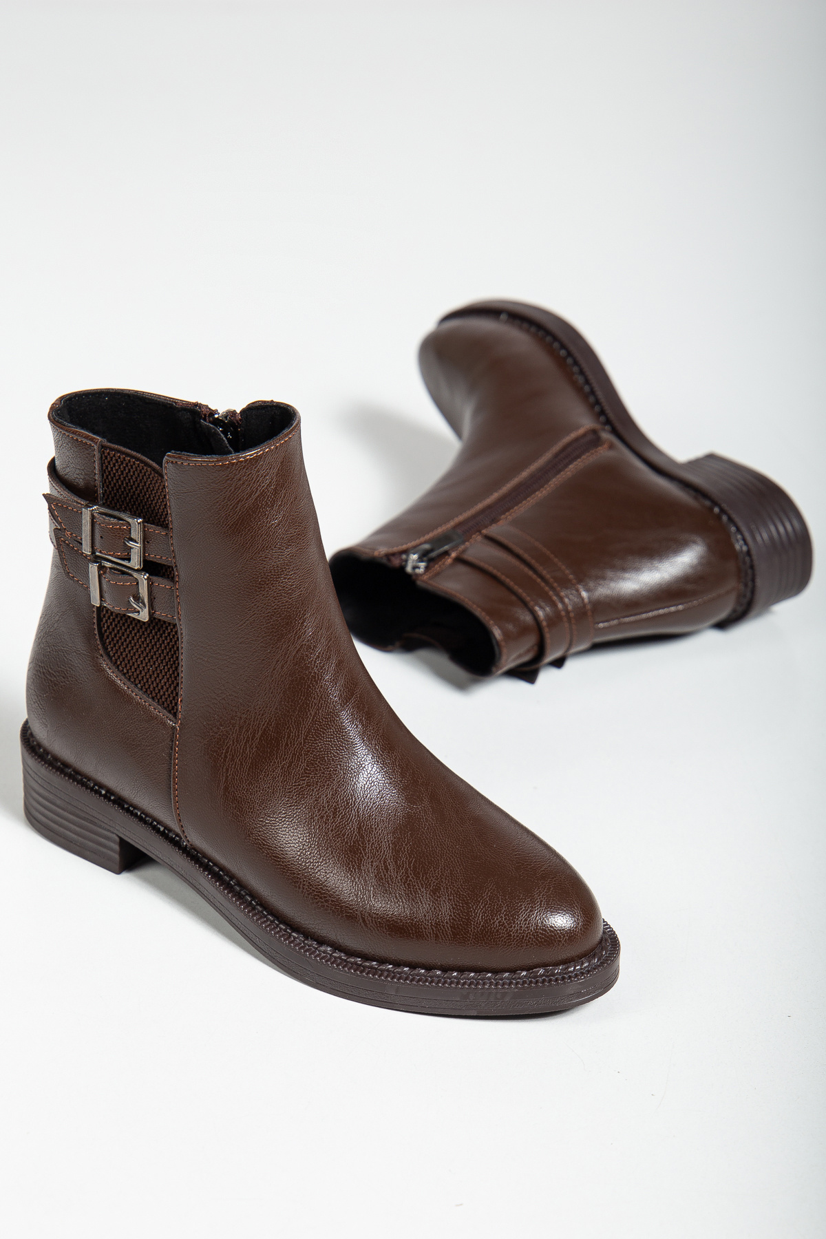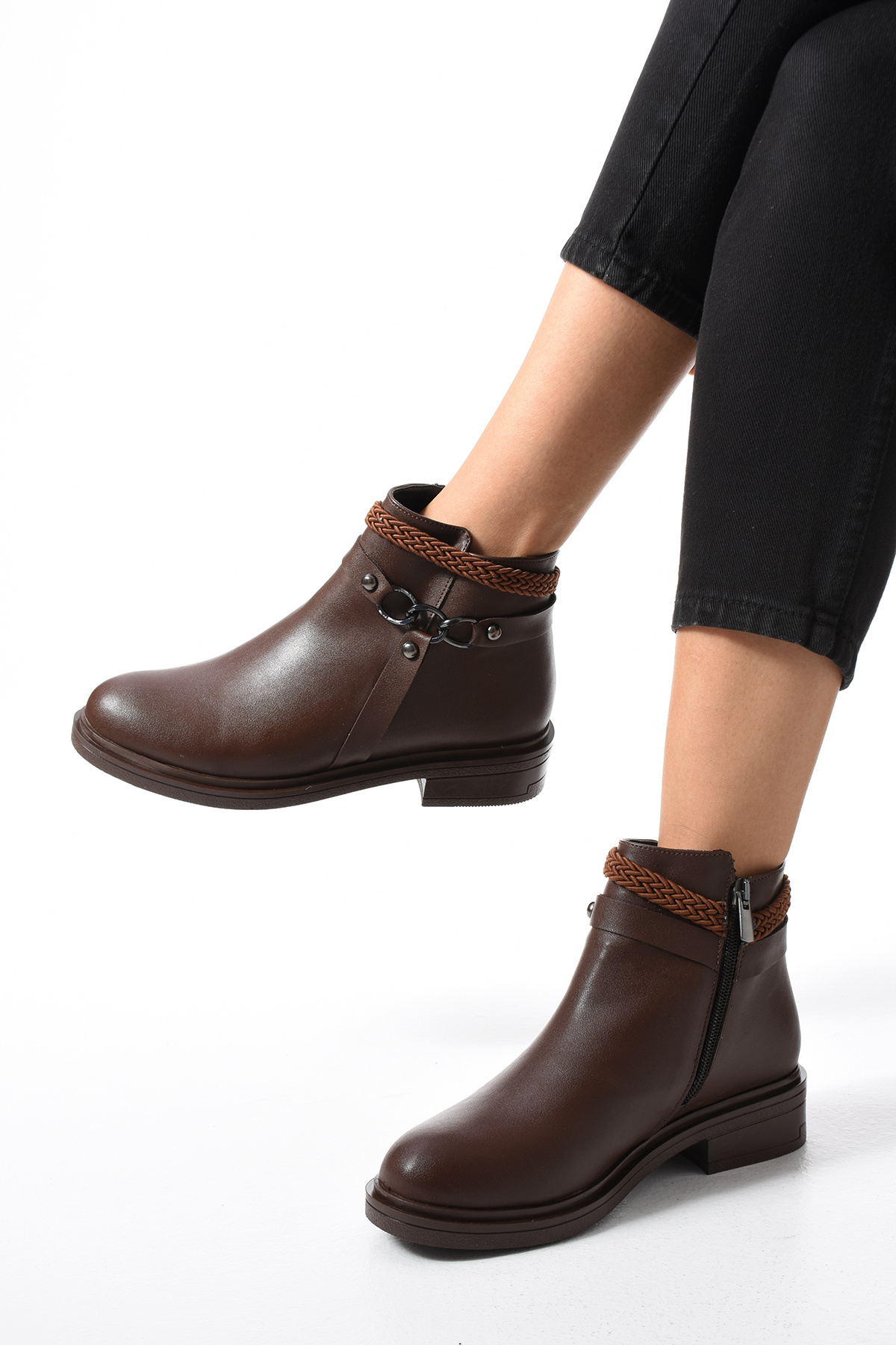 Hafif Taban İçi Suni Tüylü Toka Detaylı Fermuarlı Kadın Bot Hafif Taban İçi Suni Tüylü Toka Detaylı Fermuarlı Kadın Bot NB-00224 40