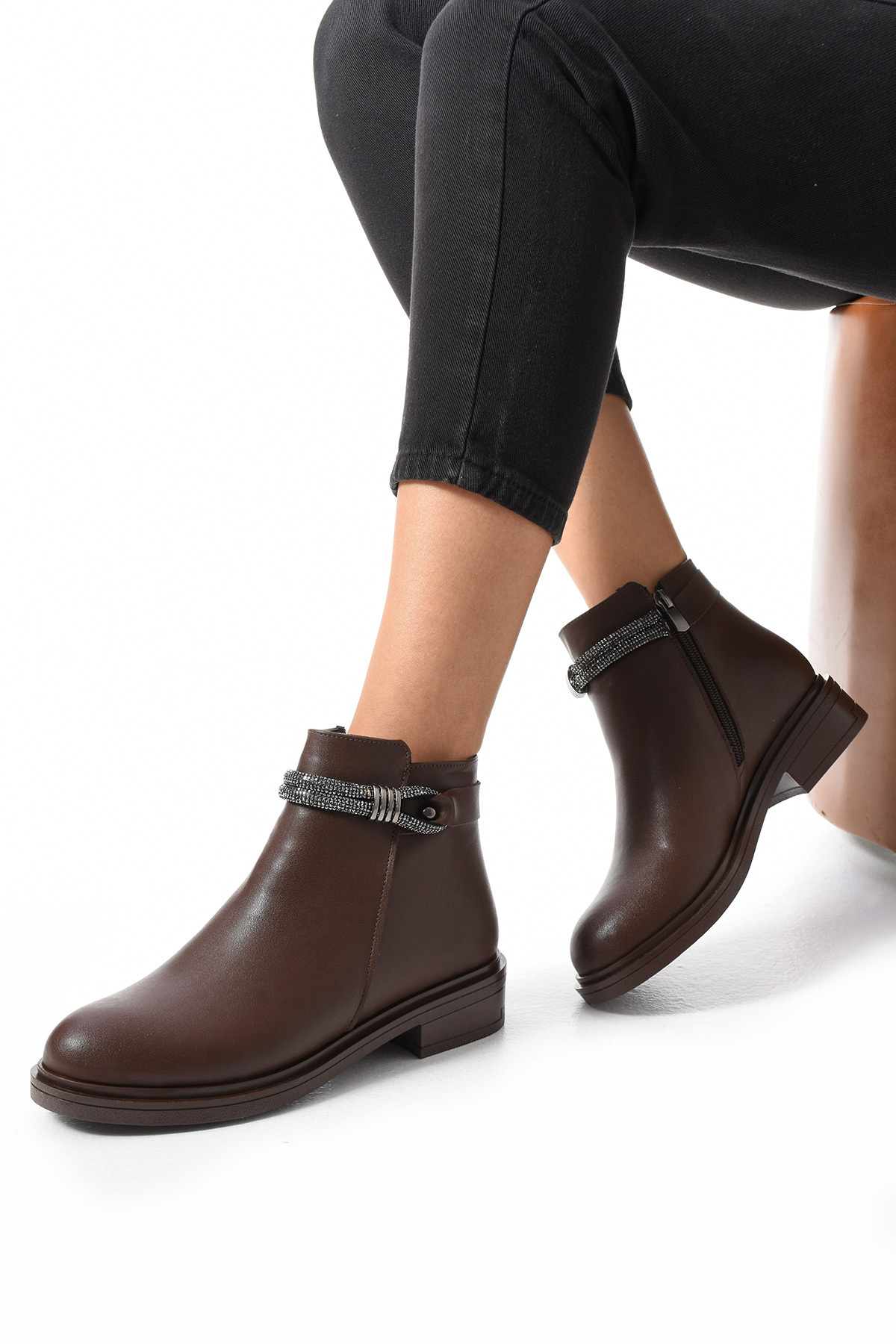 Hafif Taban Taş Tokalı Fermuarlı Kadın Bot Hafif Taban Taş Tokalı Fermuarlı Kadın Bot NB-00225 40