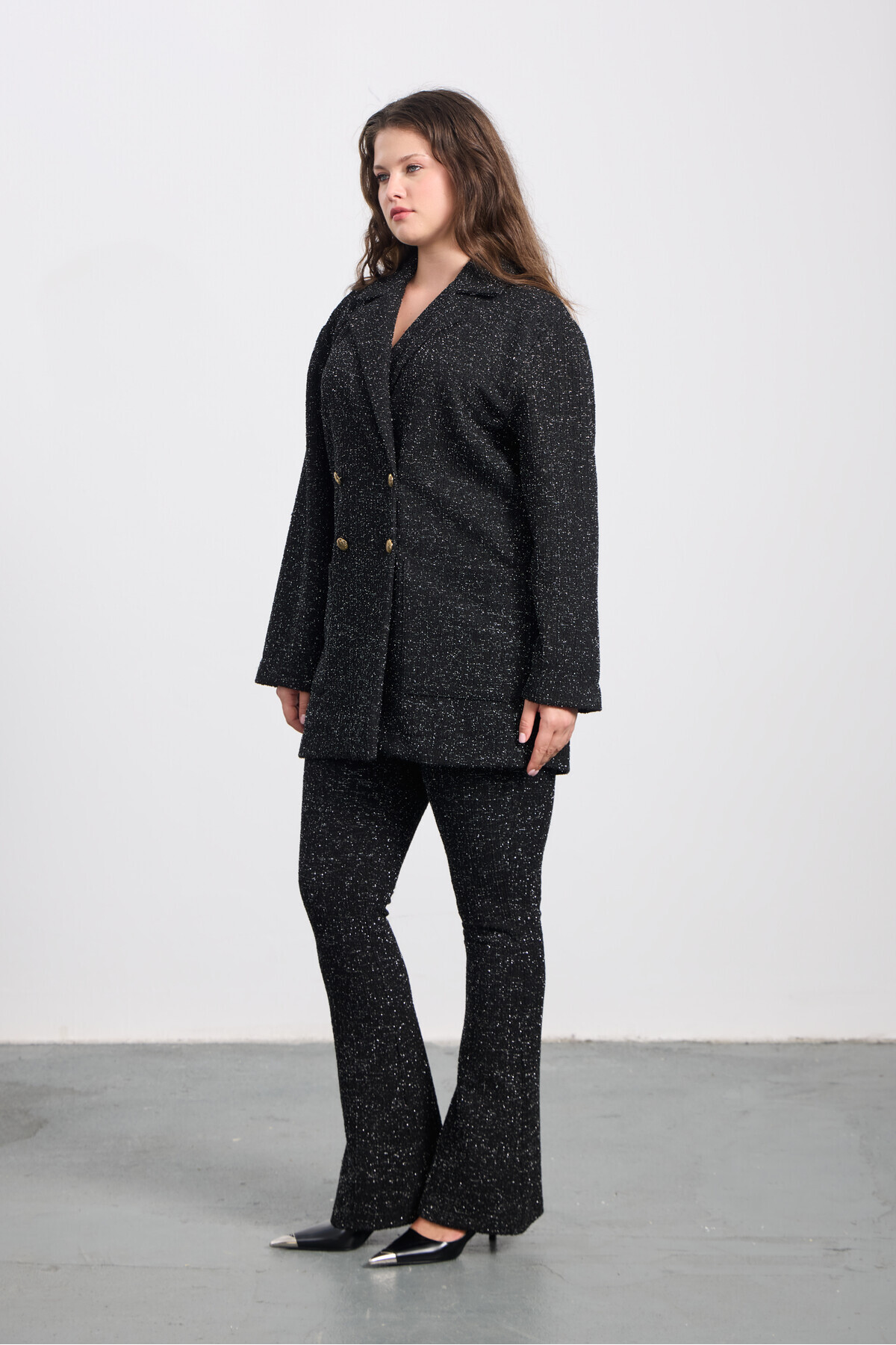 - Materyal Bileşeni : 89% Polyester, 6% Viskoz, 4% METALİK İP, 1% Elastan