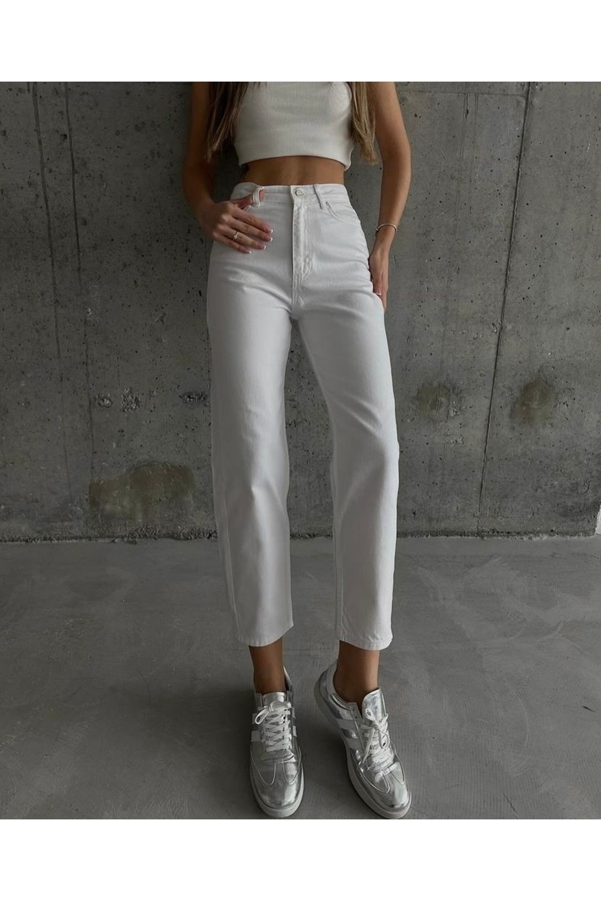 Maria Kadın Beyaz Süper Yüksek Bel Comfort Likralı Mom Kot Pantalon Jeans Maria Kadın Beyaz Süper Yüksek Bel Comfort Likralı Mom Kot Pantalon Jeans TXC9FF3BF413541 44