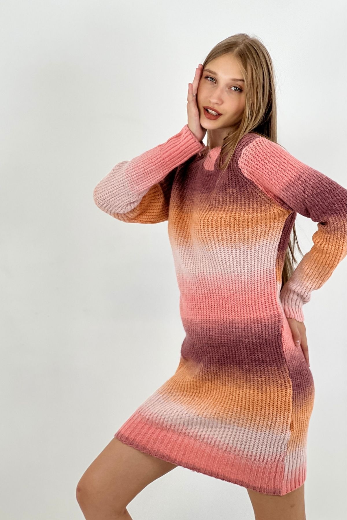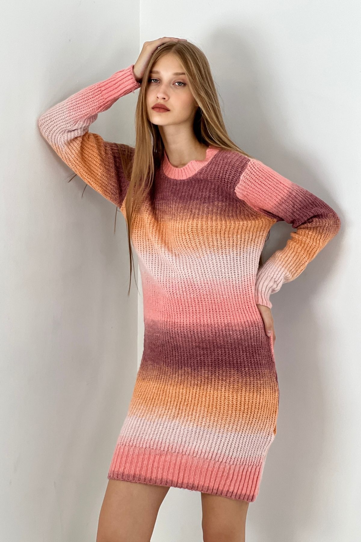 Bisiklet Yaka Fitilli Uzun Kollu Kadın Triko Elbise Pembe Bisiklet Yaka Fitilli Uzun Kollu Kadın Triko Elbise Pembe 23K0133082 M/L