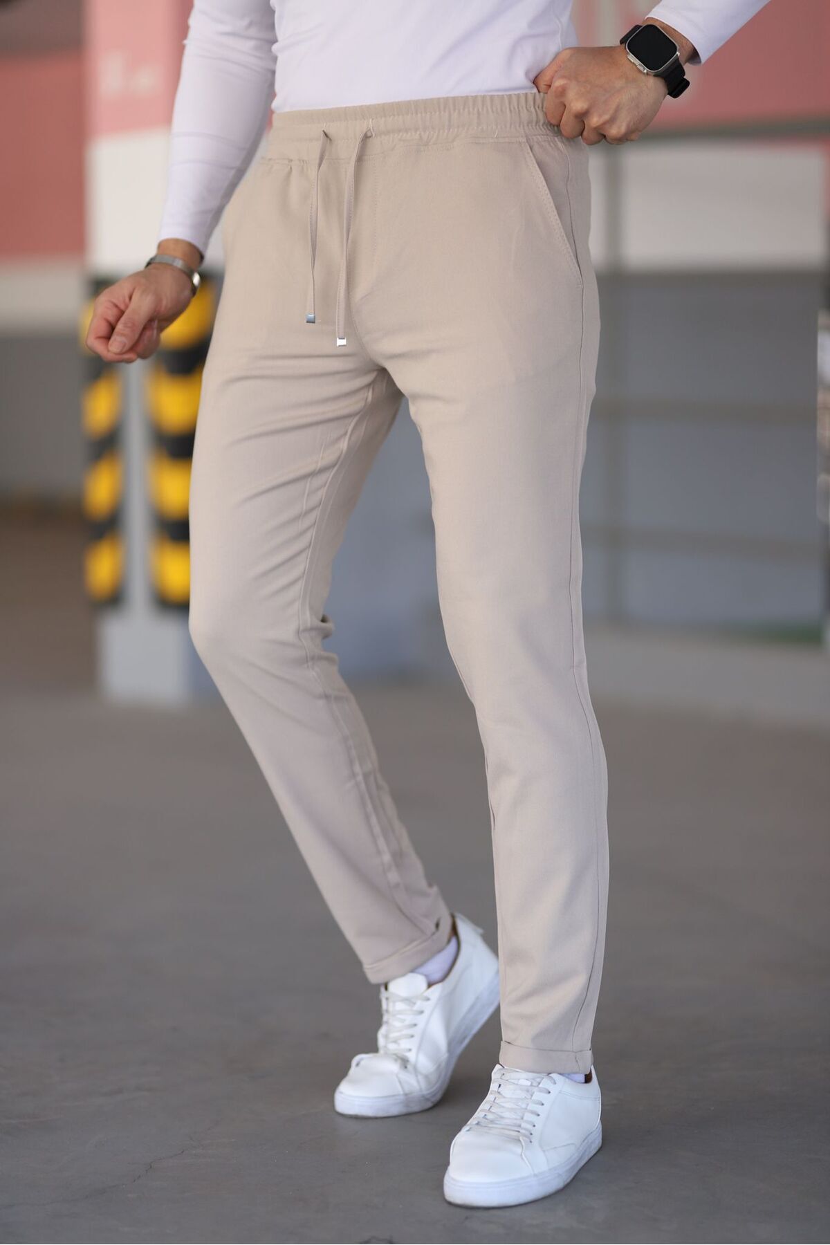 Erkek Krem Renk Beli Lastikli Bağcıklı Esnek Fitted Jogger Pantolon Kumaş Pantolon Erkek Krem Renk Beli Lastikli Bağcıklı Esnek Fitted Jogger Pantolon Kumaş Pantolon BRKJGDBKMS 2XL