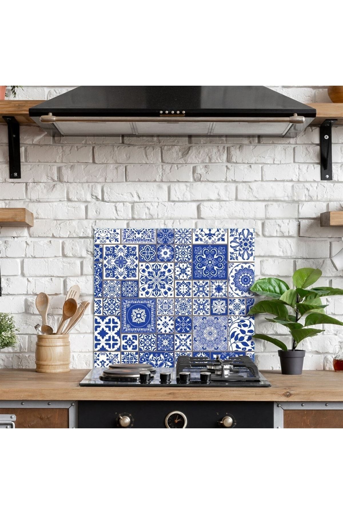 Mavi Çini Desen Cam Ocak Arkası Koruyucu, Mutfak Ankastre ve Tezgah Koruması, Temperli ve Rodajlı Mavi Çini Desen Cam Ocak Arkası Koruyucu, Mutfak Ankastre ve Tezgah Koruması, Temperli ve Rodajlı rsyvnoa12006 70 x 46