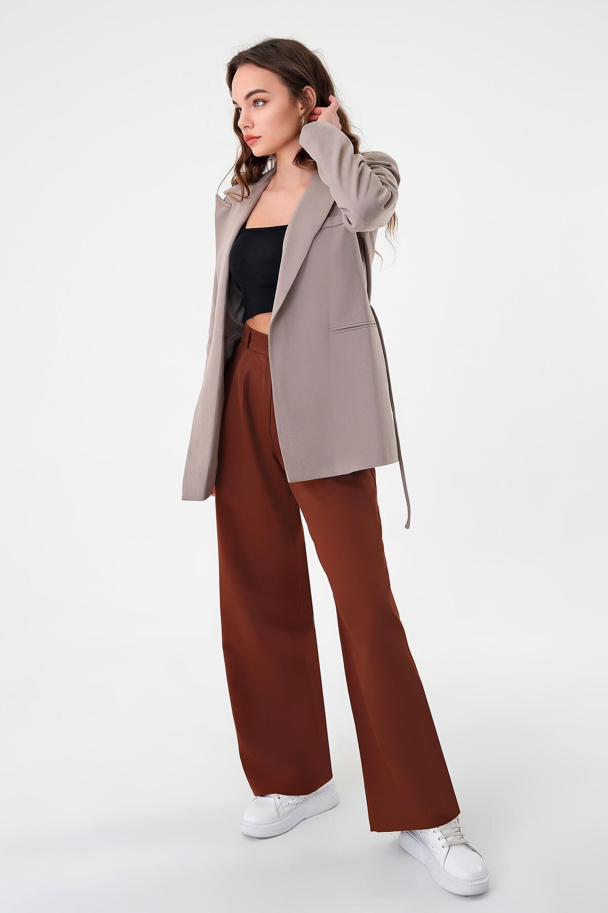 Kadın Gri Bel Bağlamalı Blazer Ceket Kadın Gri Bel Bağlamalı Blazer Ceket HZL2210 50