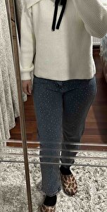 Kot Pantolon Yüksel Bel Mom Jeans Taş İşleme Detay - Kar Yıkama Kot Pantolon Yüksel Bel Mom Jeans Taş İşleme Detay - Kar Yıkama r11 42