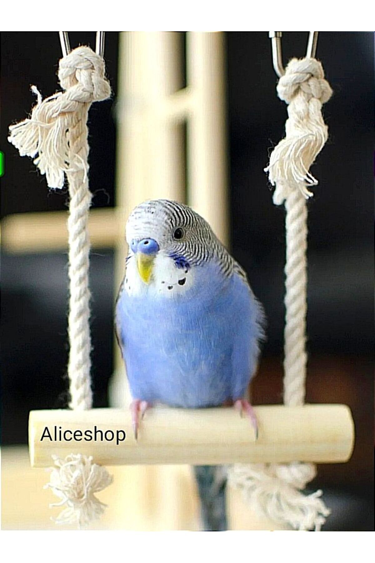 Muhabbet Kuşu ve Boyutlarındaki Kuşlar için Doğal Ahşap Boncuklu Zilli Salıncak Aliceshop0067