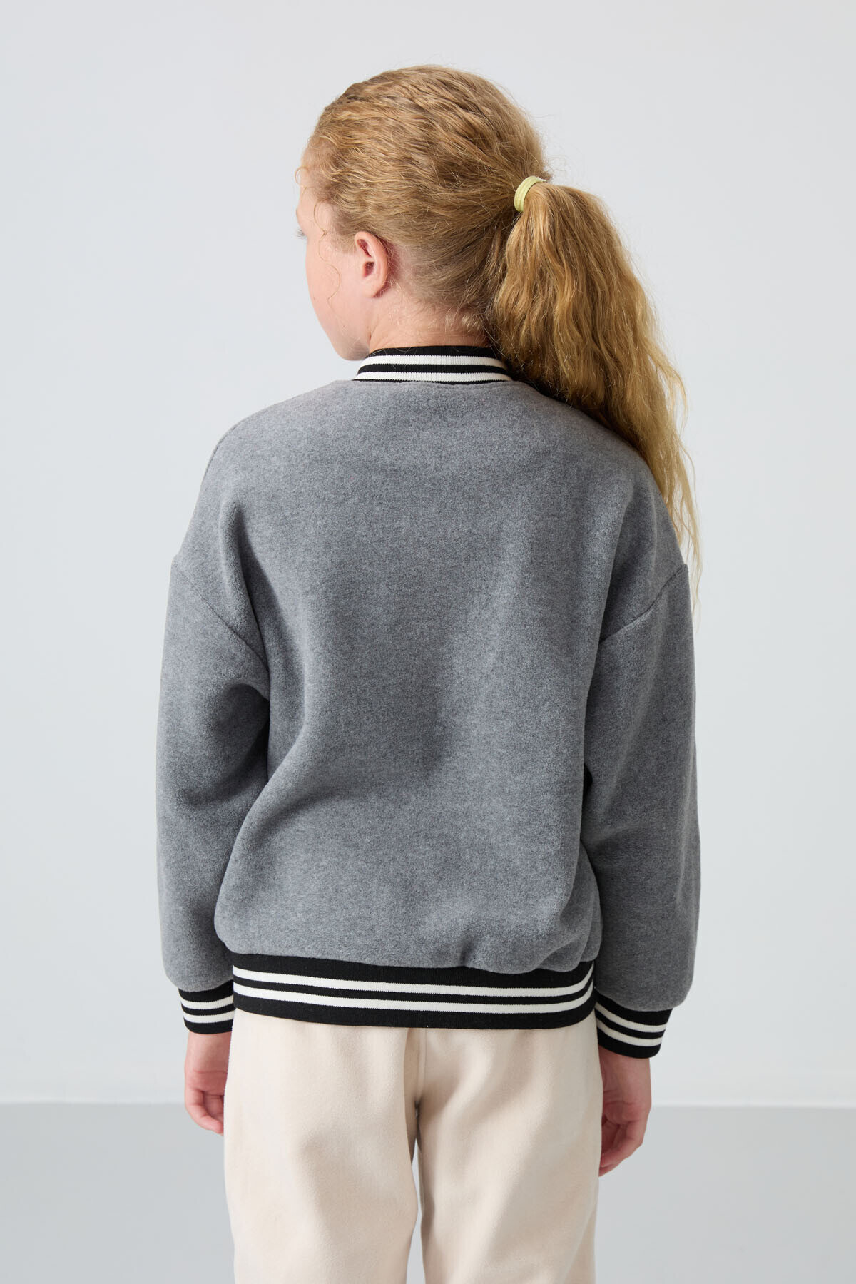 Gri Melanj Kalın Yumuşak Dokulu Standart Fit Nakışlı Polar Kız Çocuk Kolej Ceket - 75156 Gri Melanj Kalın Yumuşak Dokulu Standart Fit Nakışlı Polar Kız Çocuk Kolej Ceket - 75156 T16KG-75156 14-15 Yaş