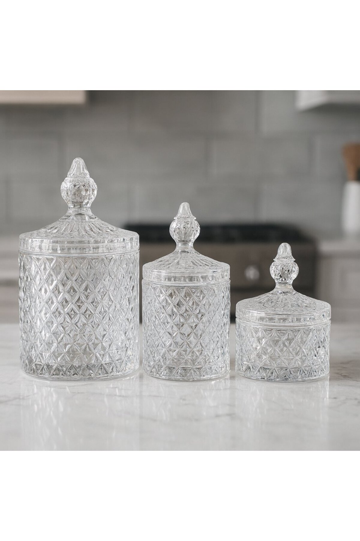 Lüx Ve Şık Cam Kapaklı Kesme Şekerlik İkramlık Lokumluk 3 Adet Hacim 300 ml Lüx Ve Şık Cam Kapaklı Kesme Şekerlik İkramlık Lokumluk 3 Adet Hacim 300 ml KesmeŞekerlik تک سایز