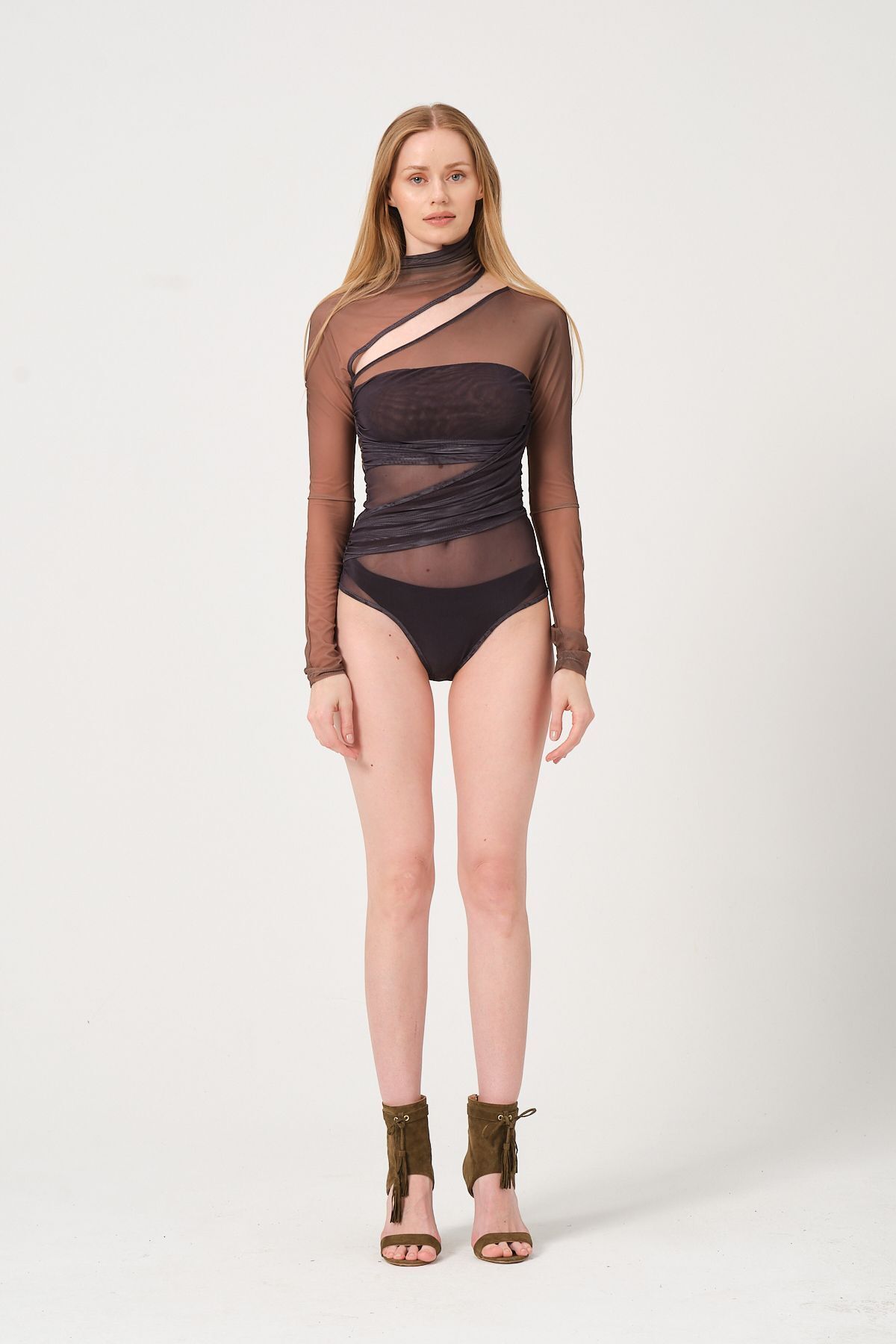 Şeffaf Tül Kumaş Pamuklu Uzun Kol Kapalı Yaka Kadın Çıtçıtlı Body Şeffaf Tül Kumaş Pamuklu Uzun Kol Kapalı Yaka Kadın Çıtçıtlı Body ÖZKAN20577 XL