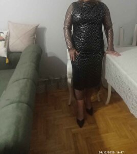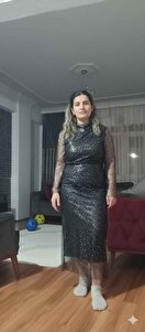 Kadın Siyah Hakim Yaka Gümüş Puantiye Detay Transparan Tül Kollu Astarlı Drapeli Midi Abiye Elbise Kadın Siyah Hakim Yaka Gümüş Puantiye Detay Transparan Tül Kollu Astarlı Drapeli Midi Abiye Elbise Wcasml2055x 3XL