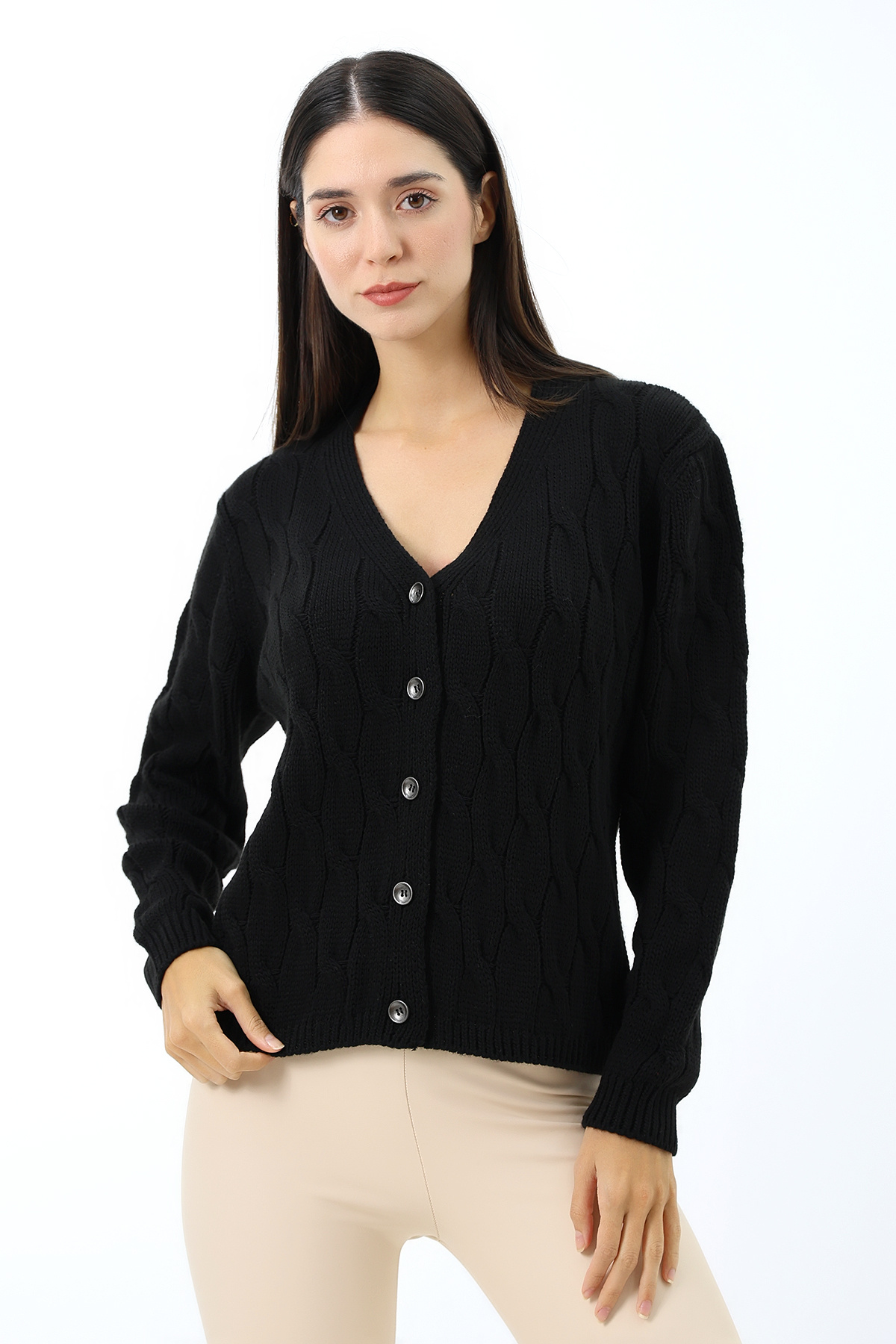 Kadın Düğmeli Yumuşak Dokulu Triko Hırka Açık Gri Kadın Düğmeli Yumuşak Dokulu Triko Hırka Açık Gri DVKA-0556 Standart