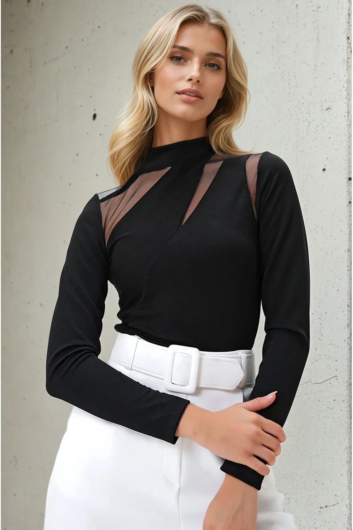 KADIN YAKASI FIRFIRLI KOLU TÜL ESNEK ÖRME KUMAŞ BLUZ KADIN YAKASI FIRFIRLI KOLU TÜL ESNEK ÖRME KUMAŞ BLUZ WTXBLZS24K0031910 XL