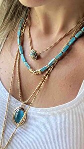 (ÜÇ KOLYE) Doğal Taş Mavi Çubuk Firuze Çelik Zincir Altın Kaplama Çerçeveli Taş Uç Kadın Kolye (ÜÇ KOLYE) Doğal Taş Mavi Çubuk Firuze Çelik Zincir Altın Kaplama Çerçeveli Taş Uç Kadın Kolye çubukfiruzeüçlükombinkolye M