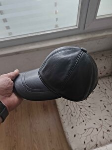 Hakiki Deri - KAŞE - Unisex Beyzbol Şapkası - Ayarlanabilir Deri Erkek ve Hakiki Deri - KAŞE - Unisex Beyzbol Şapkası - Ayarlanabilir Deri Erkek ve ER78 61 cm