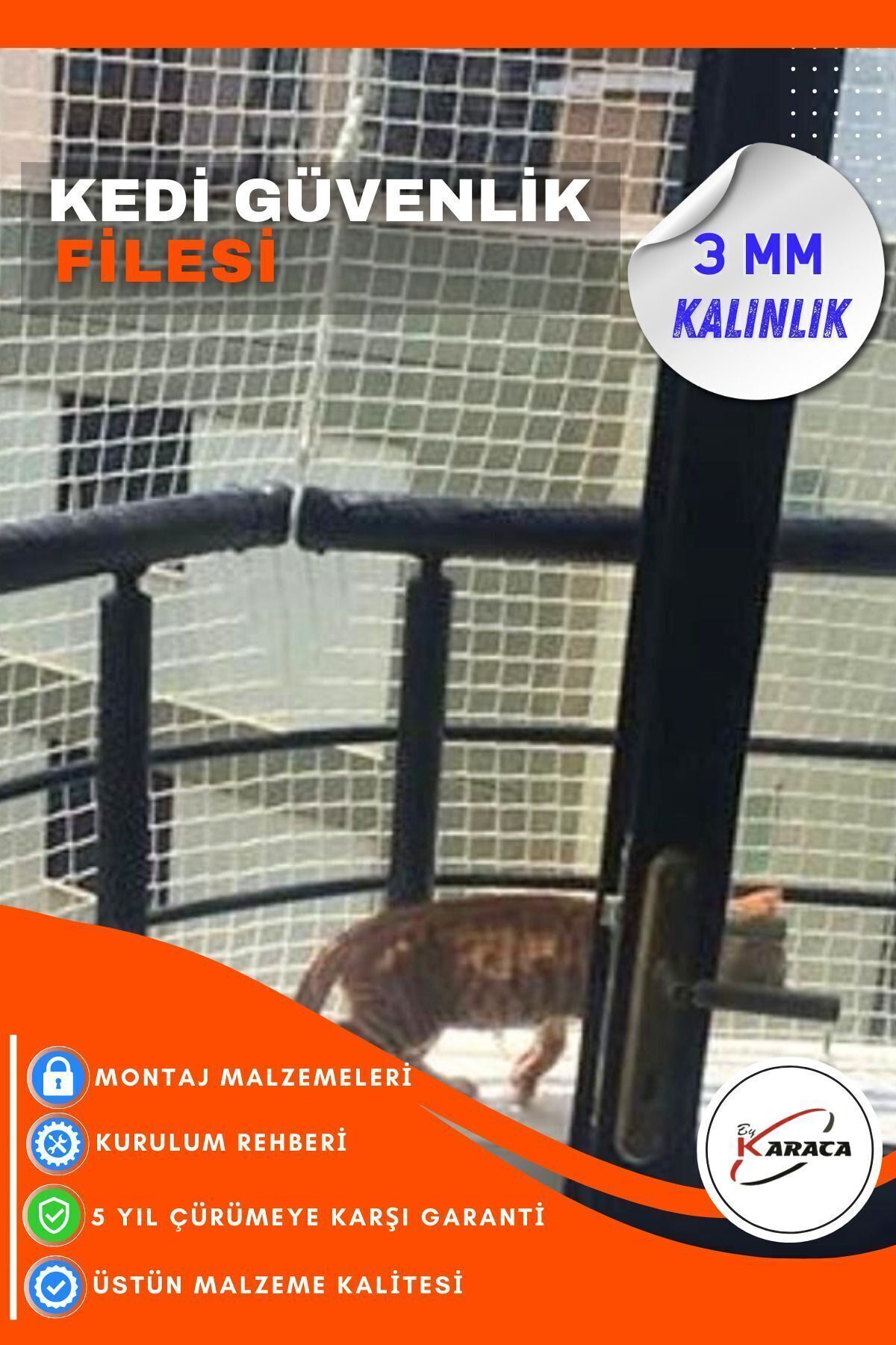 Kedi Balkon Güvenlik Filesi 1.5x12 Mt 3mm İp Kalınlığı 4x4 Gözenekli + Montaj Malzemeleri Kedi Balkon Güvenlik Filesi 1.5x12 Mt 3mm İp Kalınlığı 4x4 Gözenekli + Montaj Malzemeleri by20244410