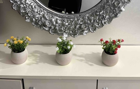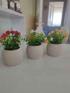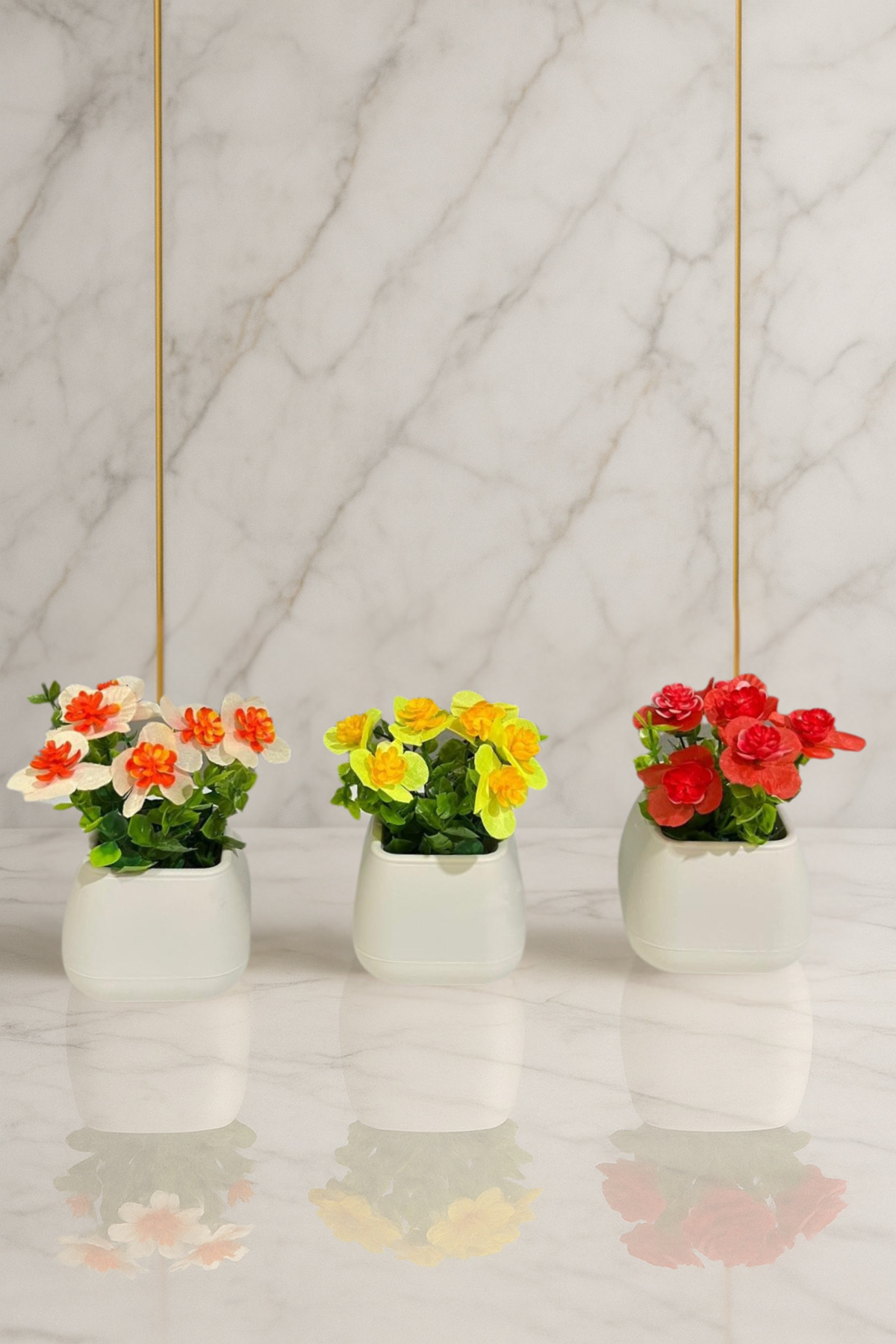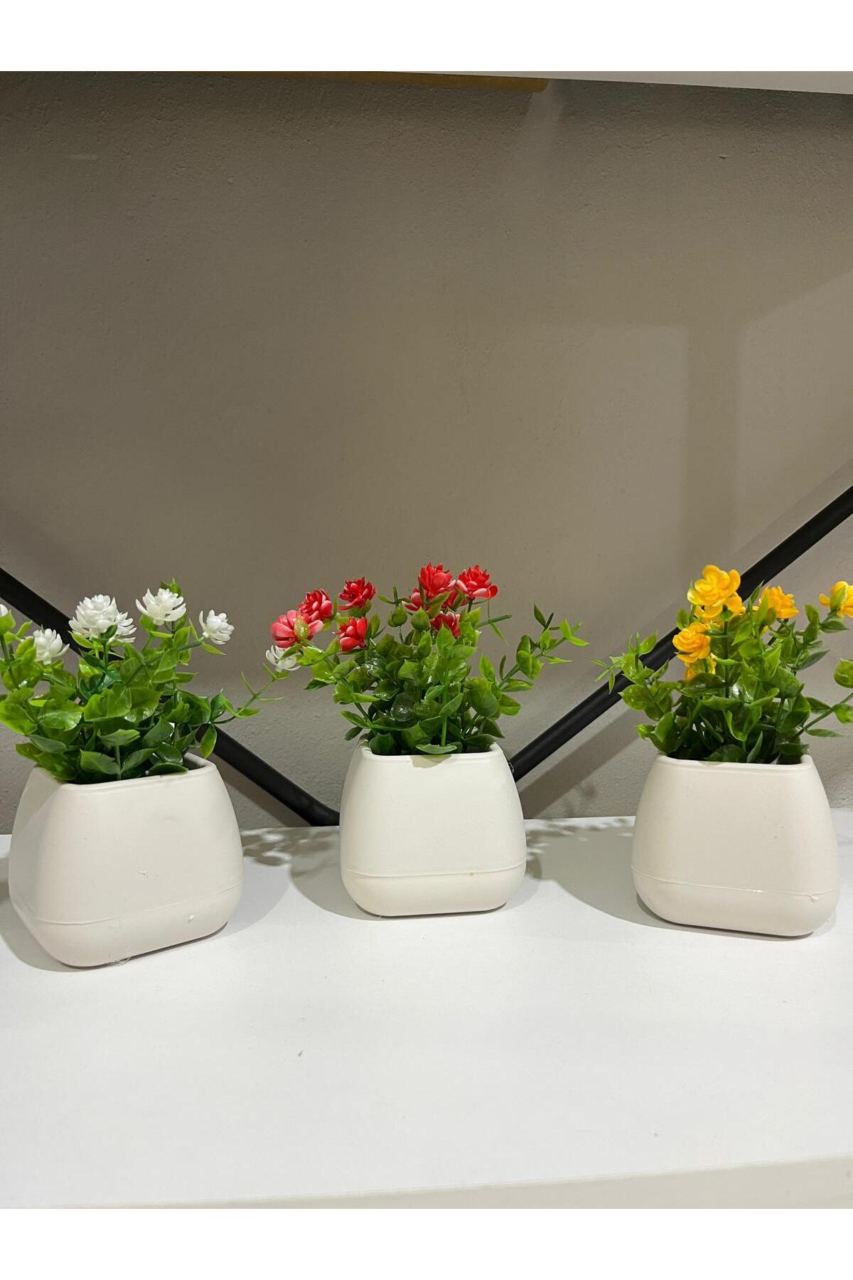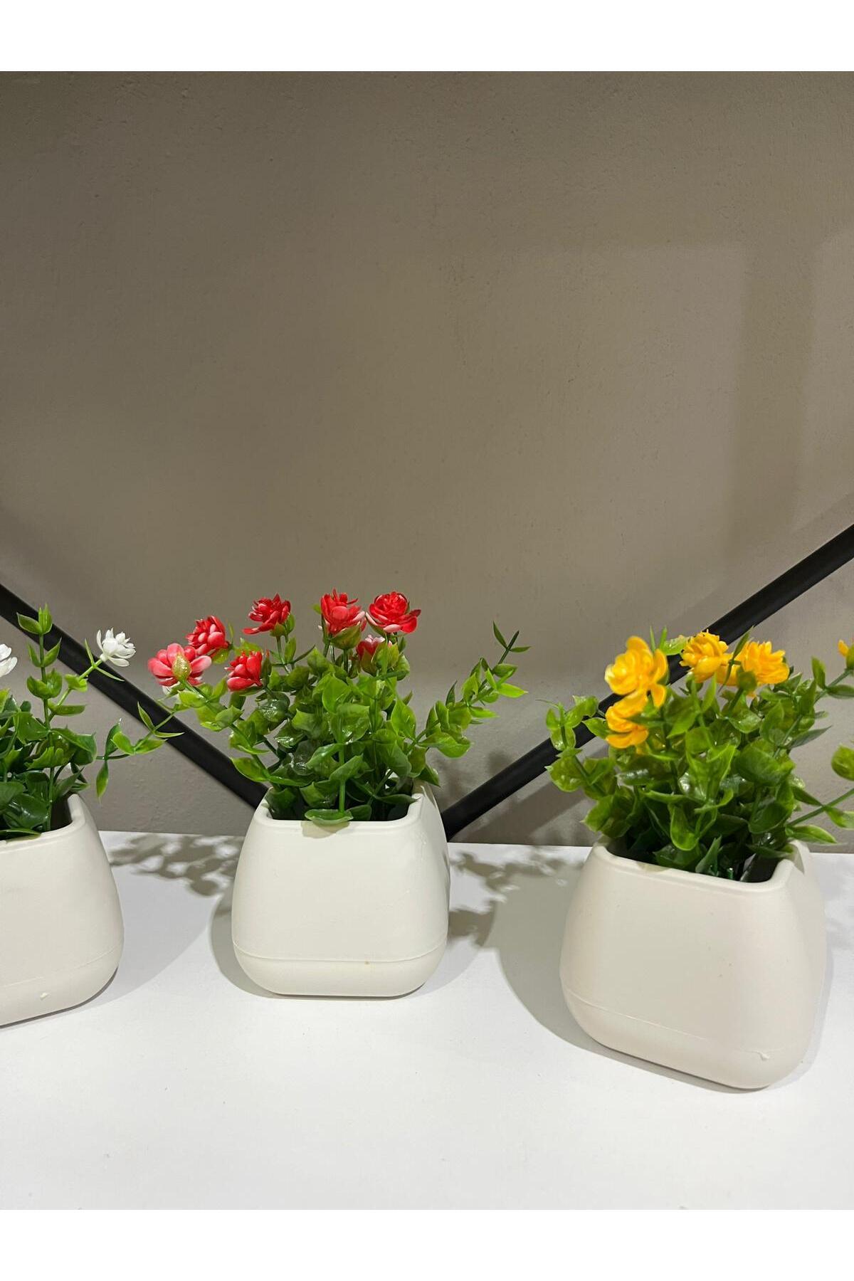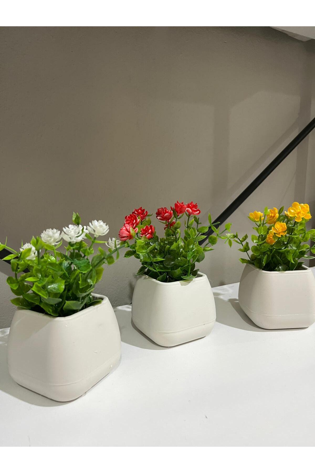 مشخصات فنی Küçük Boy Saksıda Yapay Çiçek Bitki 3 Adet, Gerçekçi Yapay Çiçek Masa Dekoru