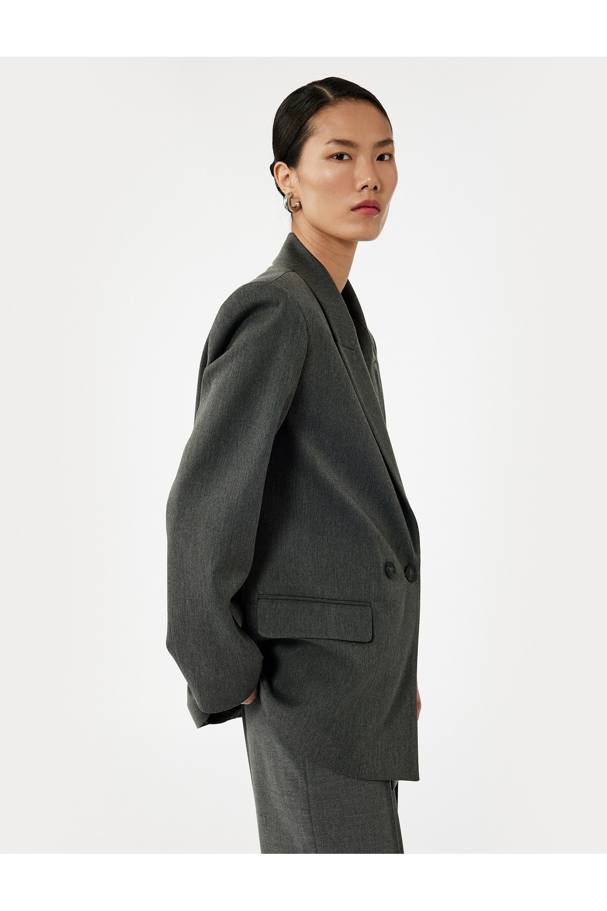 Blazer Ceket Kruvaze Cepli Düğmeli Blazer Ceket Kruvaze Cepli Düğmeli 5WAK50094UW 42