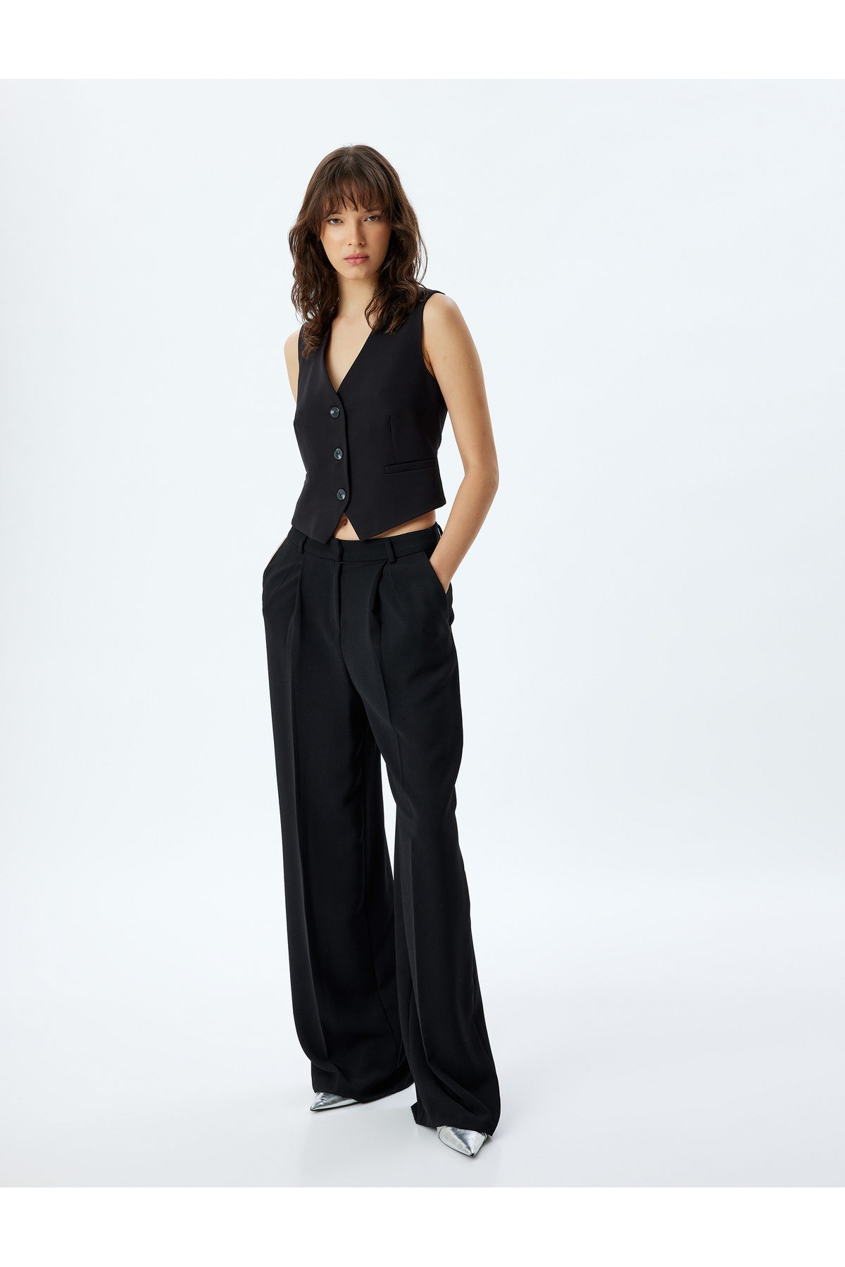 Düğmeli V Yaka Slim Fit Blazer Yelek Düğmeli V Yaka Slim Fit Blazer Yelek 5WAK20042UW 42
