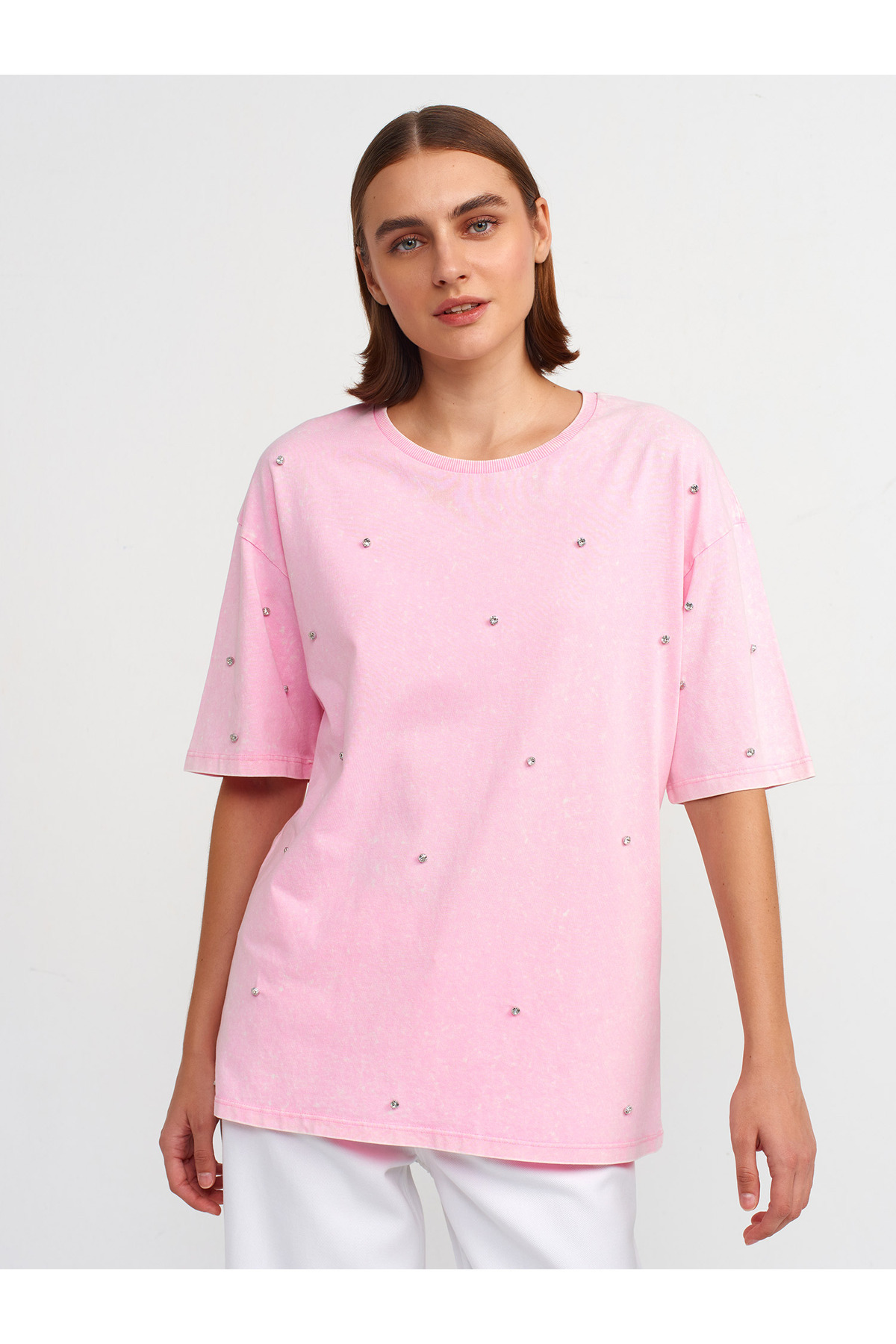31150 Yıkama Efektli Taşlı T-shirt-Açık Pembe 31150 Yıkama Efektli Taşlı T-shirt-Açık Pembe 101A31150 40