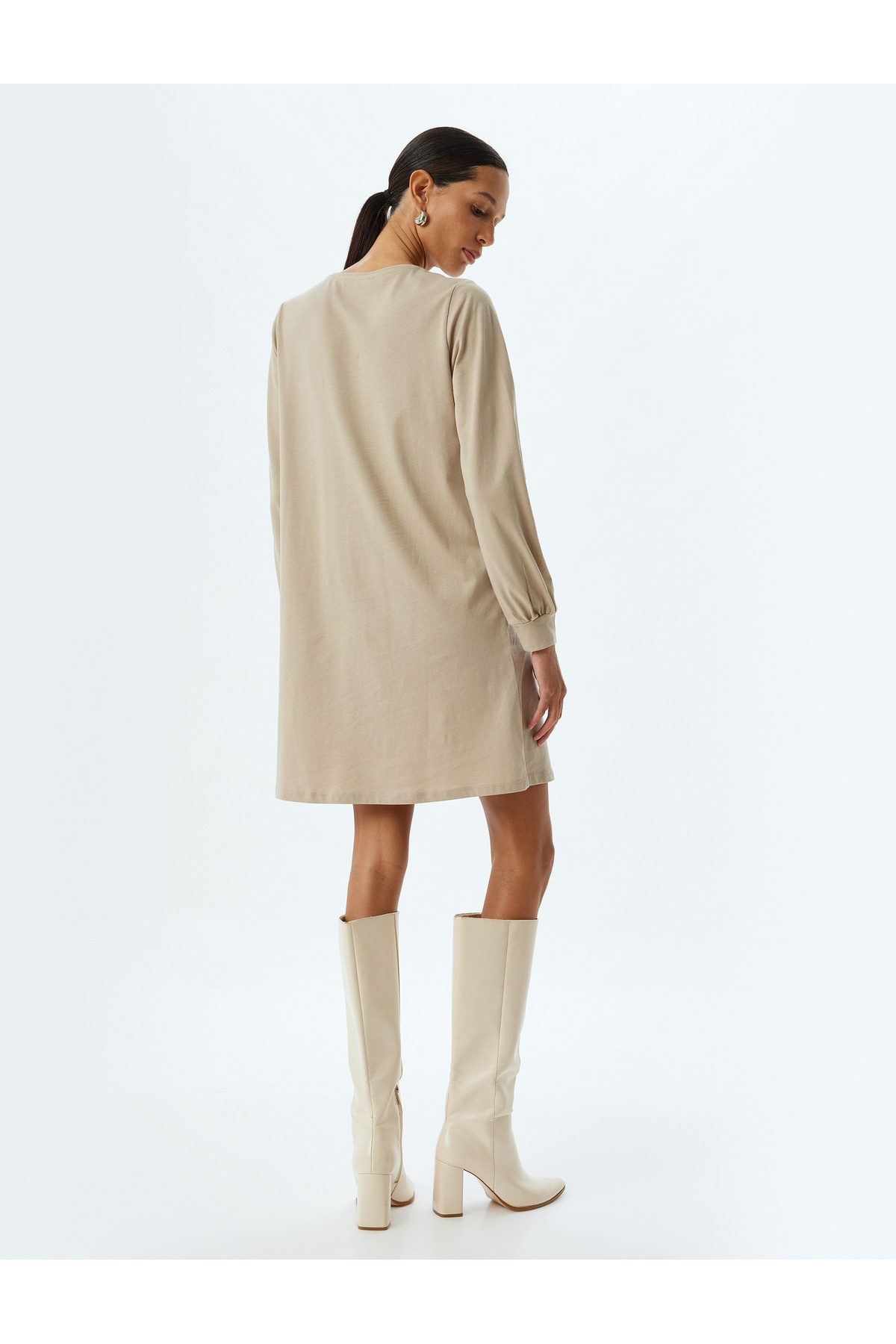 Mini Elbise Manşetli Uzun Kollu Yuvarlak Yaka Pamuklu Mini Elbise Manşetli Uzun Kollu Yuvarlak Yaka Pamuklu 5WAK80119EK XL