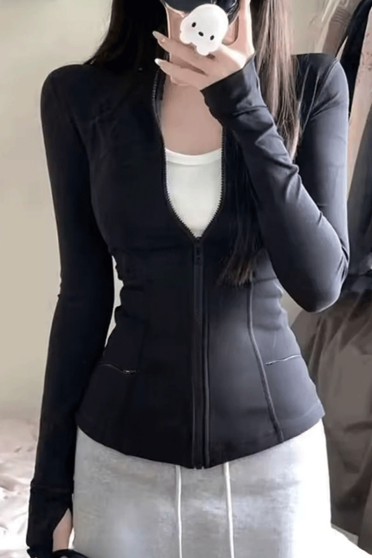 Siyah Prix Fermuarlı Harajuku Uzun Kollu Crop Hırka Siyah Prix Fermuarlı Harajuku Uzun Kollu Crop Hırka KHFT365STY XL