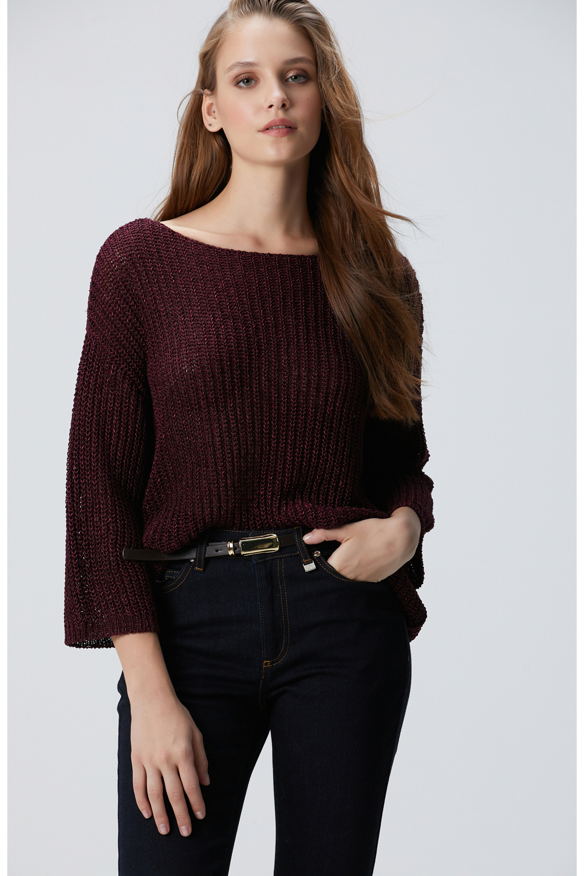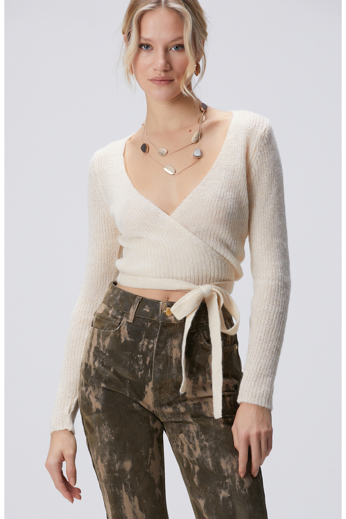 Kırık Beyaz Omuz Detaylı Triko Kazak Kırık Beyaz Omuz Detaylı Triko Kazak 1092224 XL