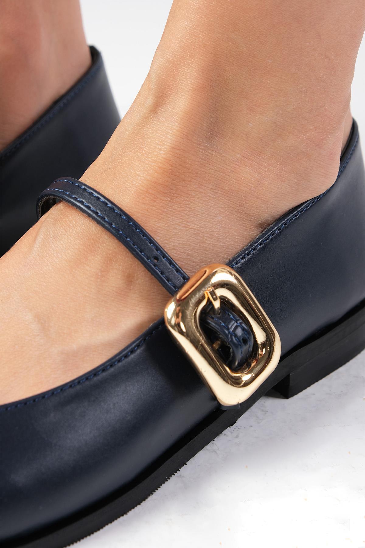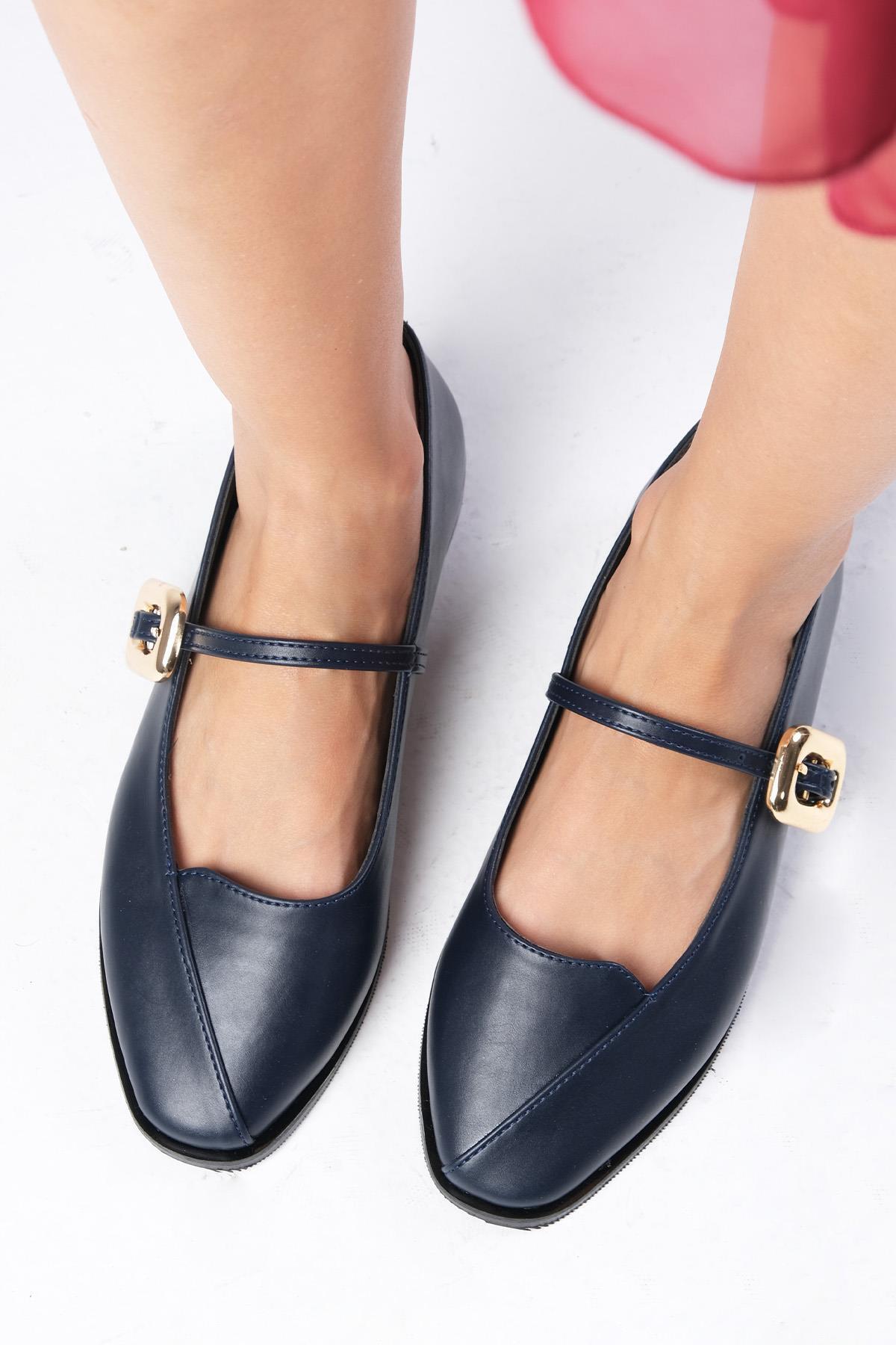 Juliet Lacivert Renk Yandan Tokalı Kadın Babet Ayakkabı Juliet Lacivert Renk Yandan Tokalı Kadın Babet Ayakkabı 02335WRC 42