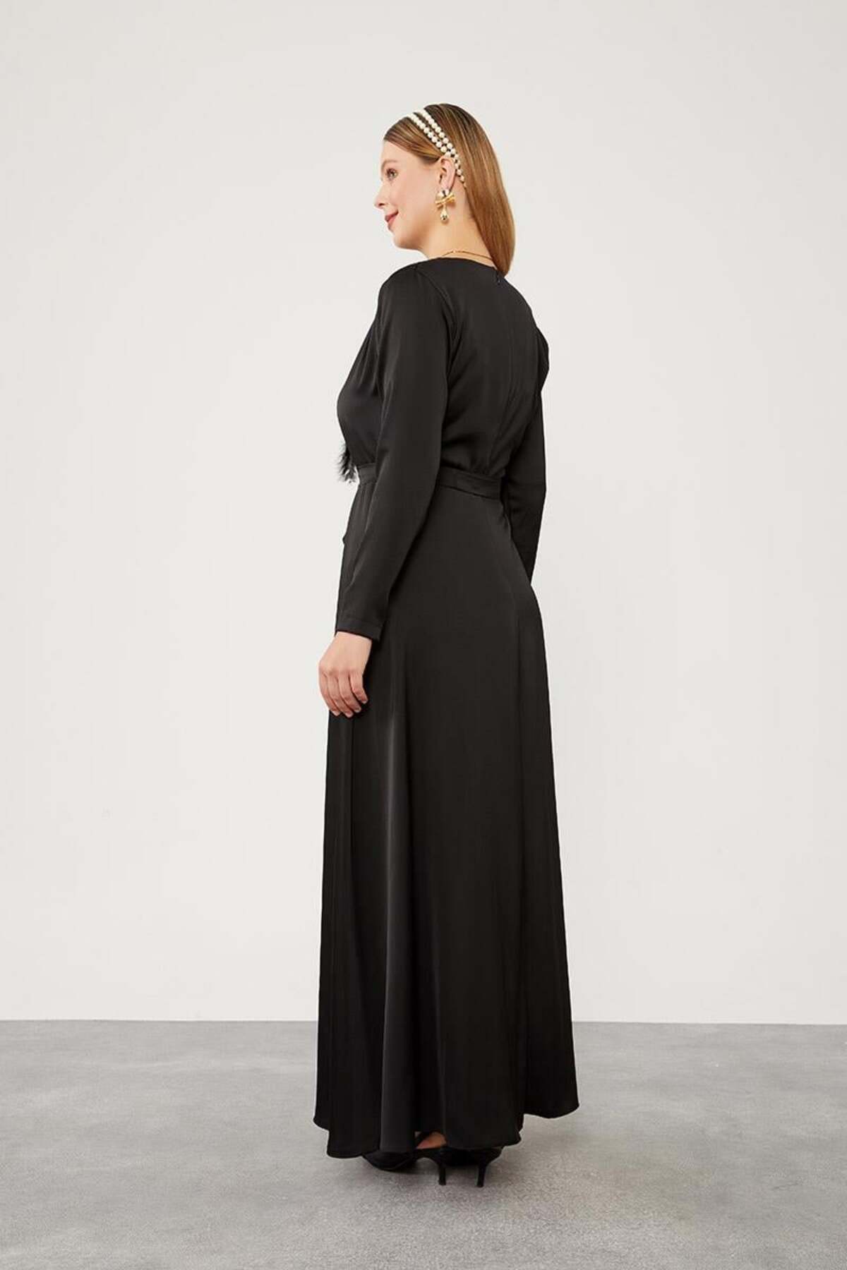Siyah Kuşak Bağlamalı Saten Elbise Siyah Kuşak Bağlamalı Saten Elbise 330204 syh 46