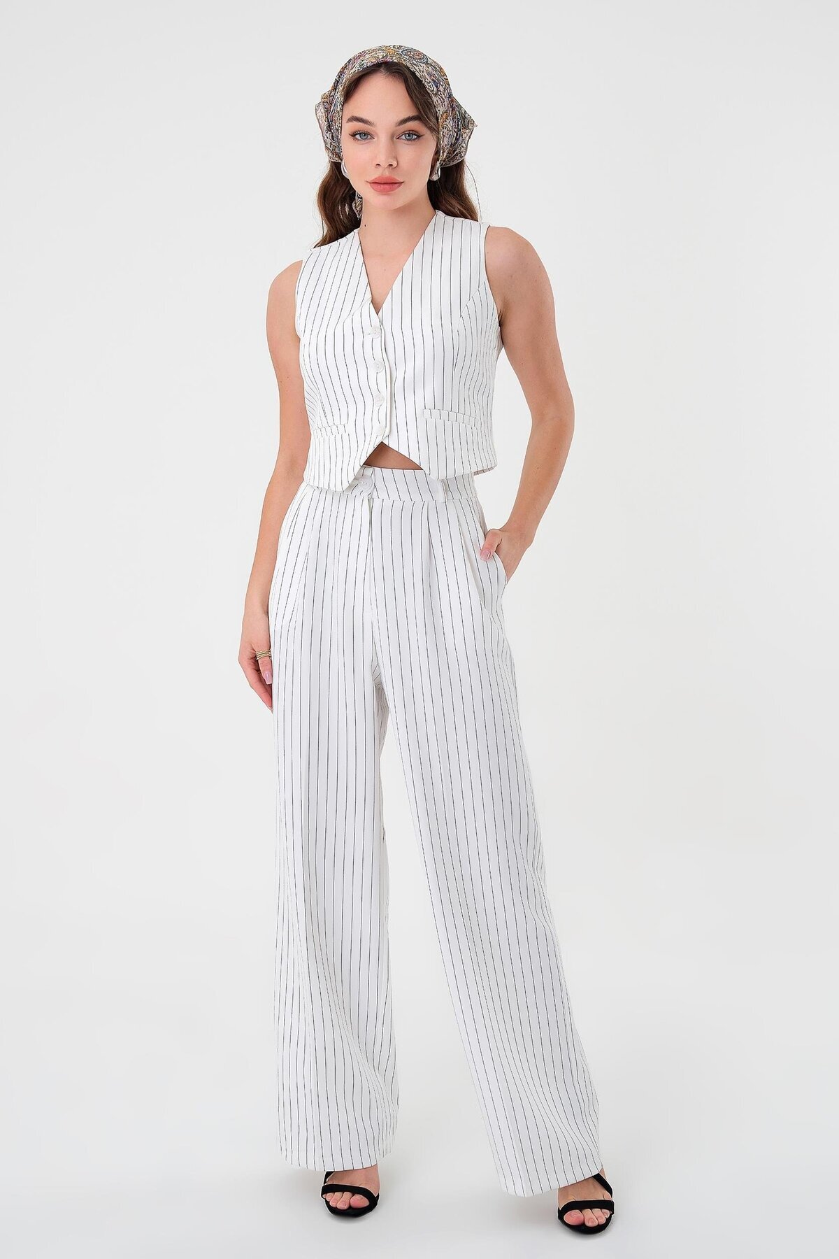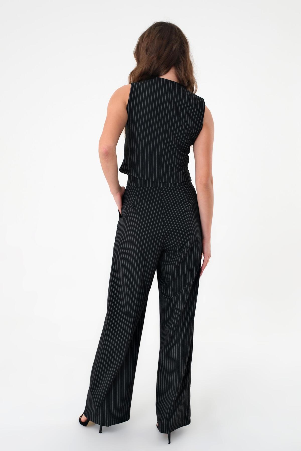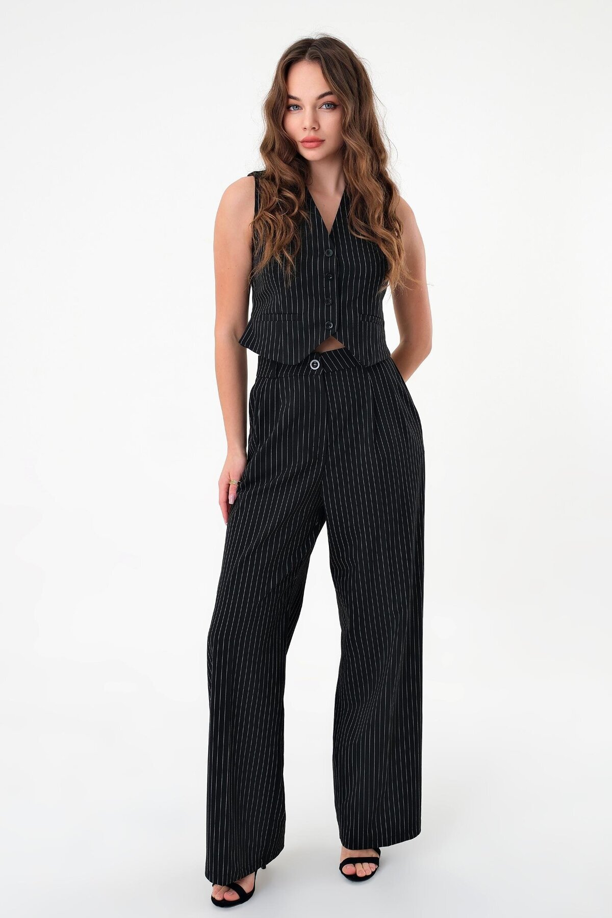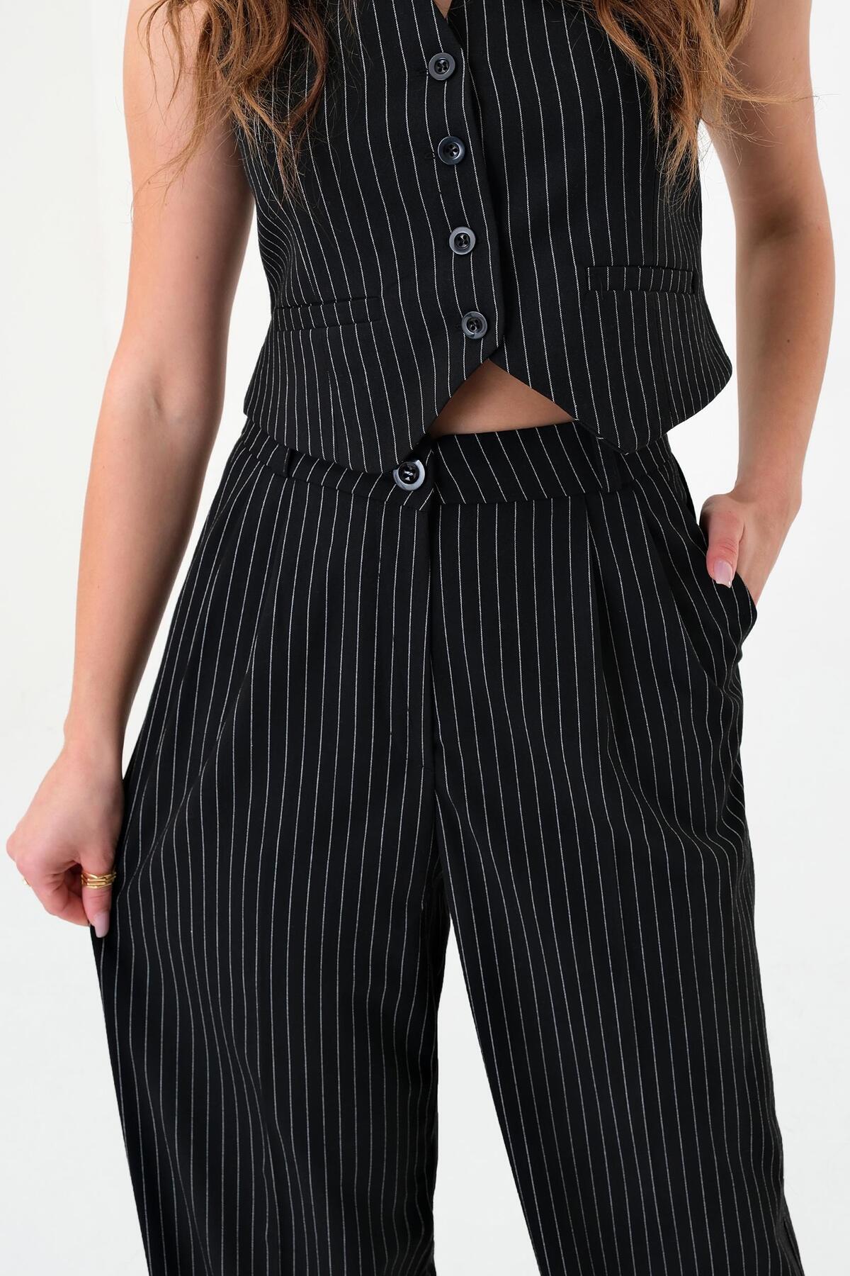 Kadın Siyah Çizgili Yelek Pantolon Takım Kadın Siyah Çizgili Yelek Pantolon Takım HZL2213 40