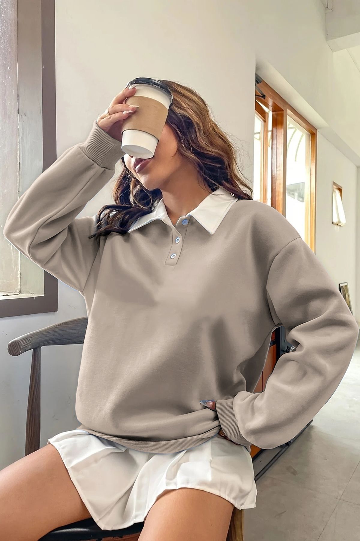 Unisex Lacivert Polo Yaka Oversize 3 İplik Şardonlu Sweatshirt Unisex Lacivert Polo Yaka Oversize 3 İplik Şardonlu Sweatshirt lzzyloveşardnluswe L/XL