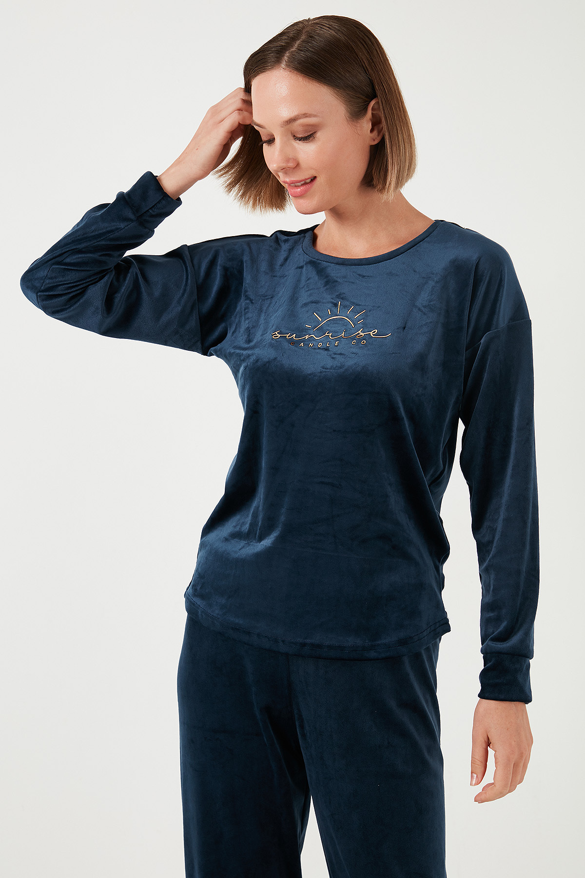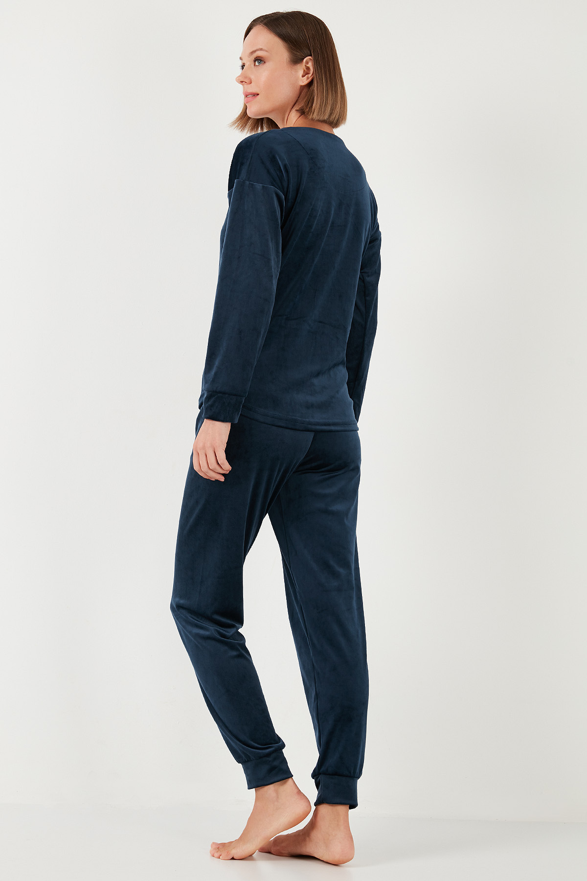 Standart Fit Bisiklet Yaka Yumuşak Kadife Pijama Takımı PİJAMA TAKIMI 6094201 Standart Fit Bisiklet Yaka Yumuşak Kadife Pijama Takımı PİJAMA TAKIMI 6094201 XL