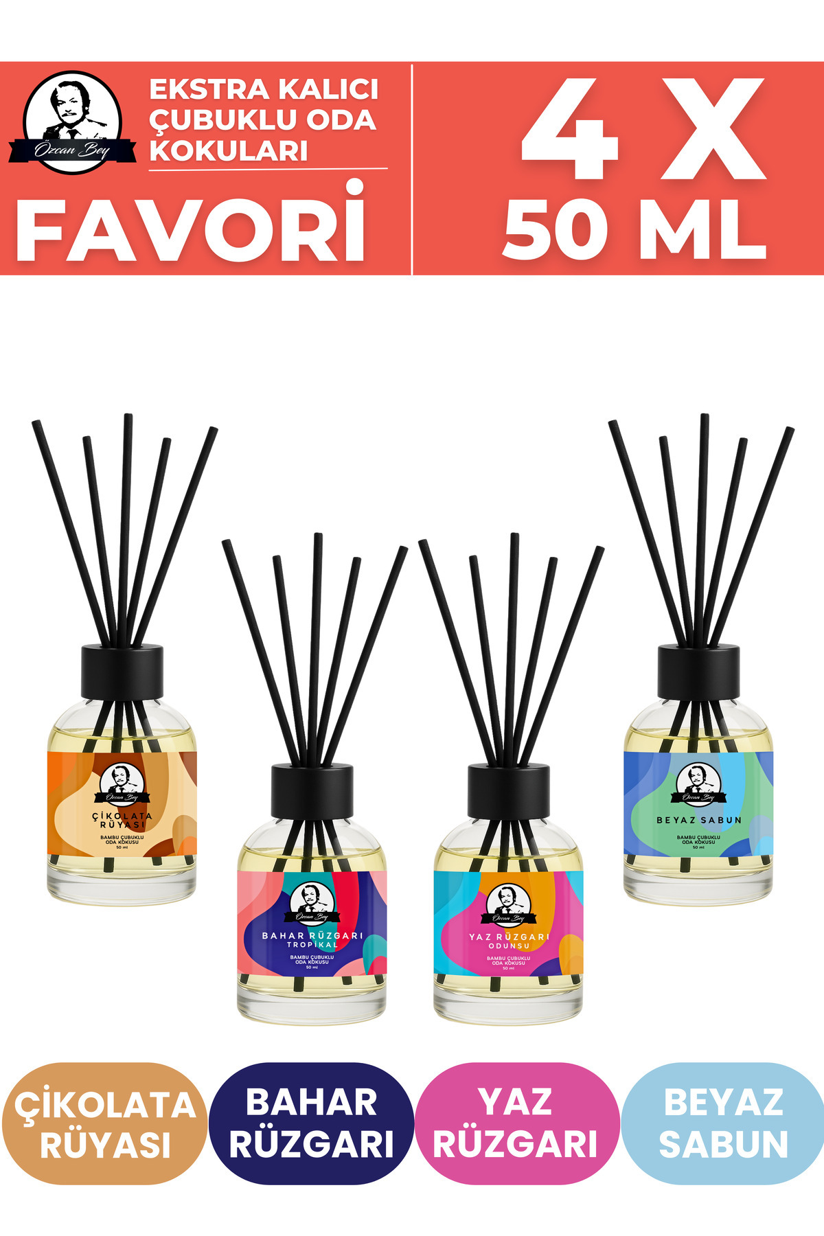 Favori 12'li Çubuklu Oda Kokuları Avantaj Seti Çikolata + Tropikal + Odunsu + Beyaz Sabun 12 x 50ml Favori 12'li Çubuklu Oda Kokuları Avantaj Seti Çikolata + Tropikal + Odunsu + Beyaz Sabun 12 x 50ml REEDDIFFUSER12PCS تک سایز