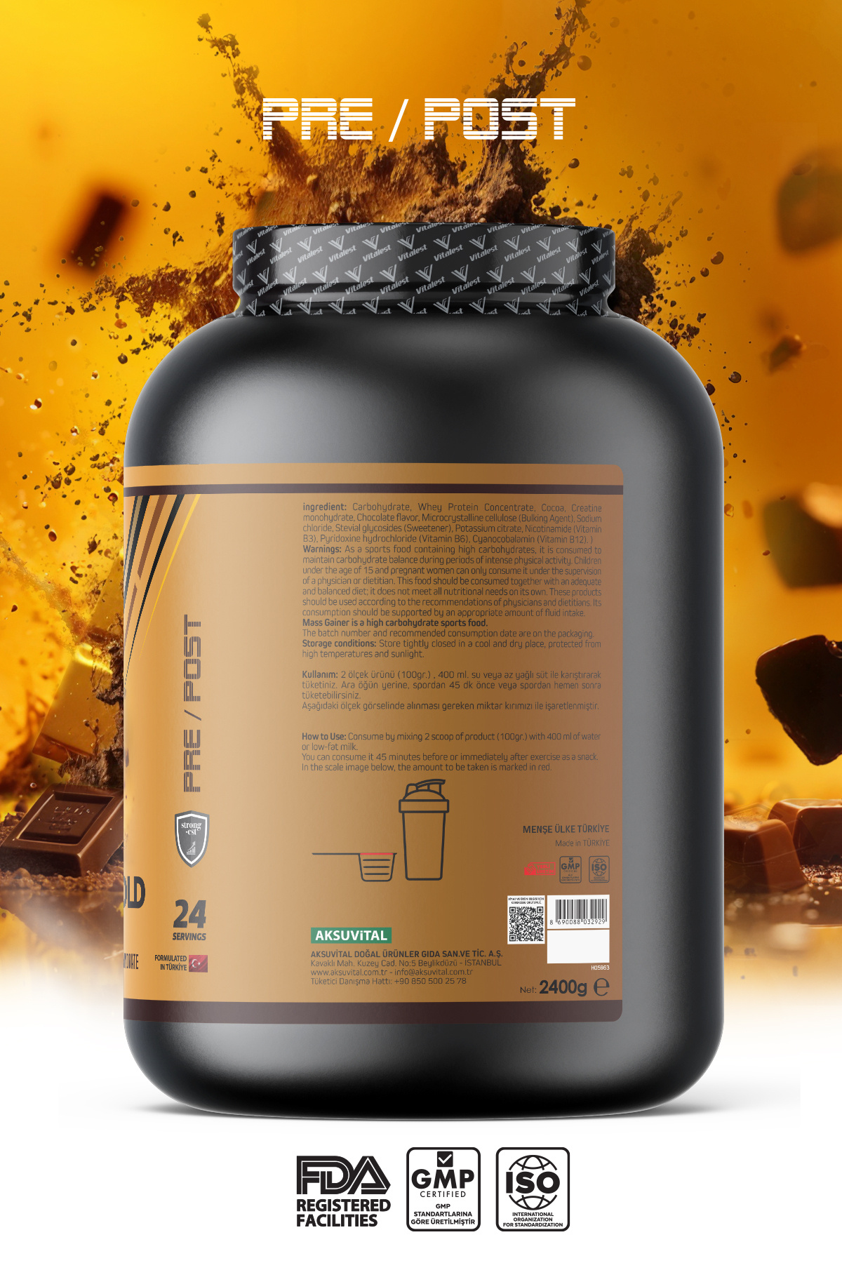 Mass Gainer Çikolata Aromalı 2400g. Karbonhidrat Tozu 24 Servis Mass Gainer Çikolata Aromalı 2400g. Karbonhidrat Tozu 24 Servis M03668-1 تک سایز