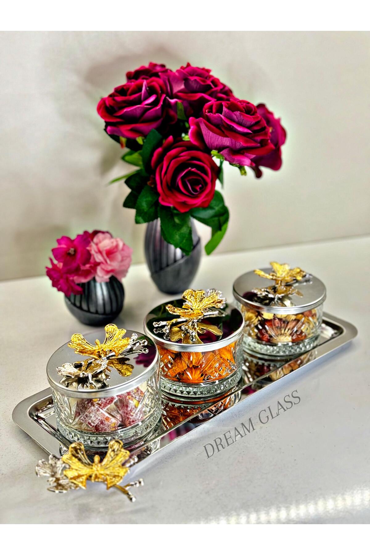 3'LÜ KELEBEKLİ GOLD TEPSİLİ KASE SETİ & ŞEKERLİK & SUNUMLUK & ÇEREZLİK 3'LÜ KELEBEKLİ GOLD TEPSİLİ KASE SETİ & ŞEKERLİK & SUNUMLUK & ÇEREZLİK TEPSİLİSET تک سایز