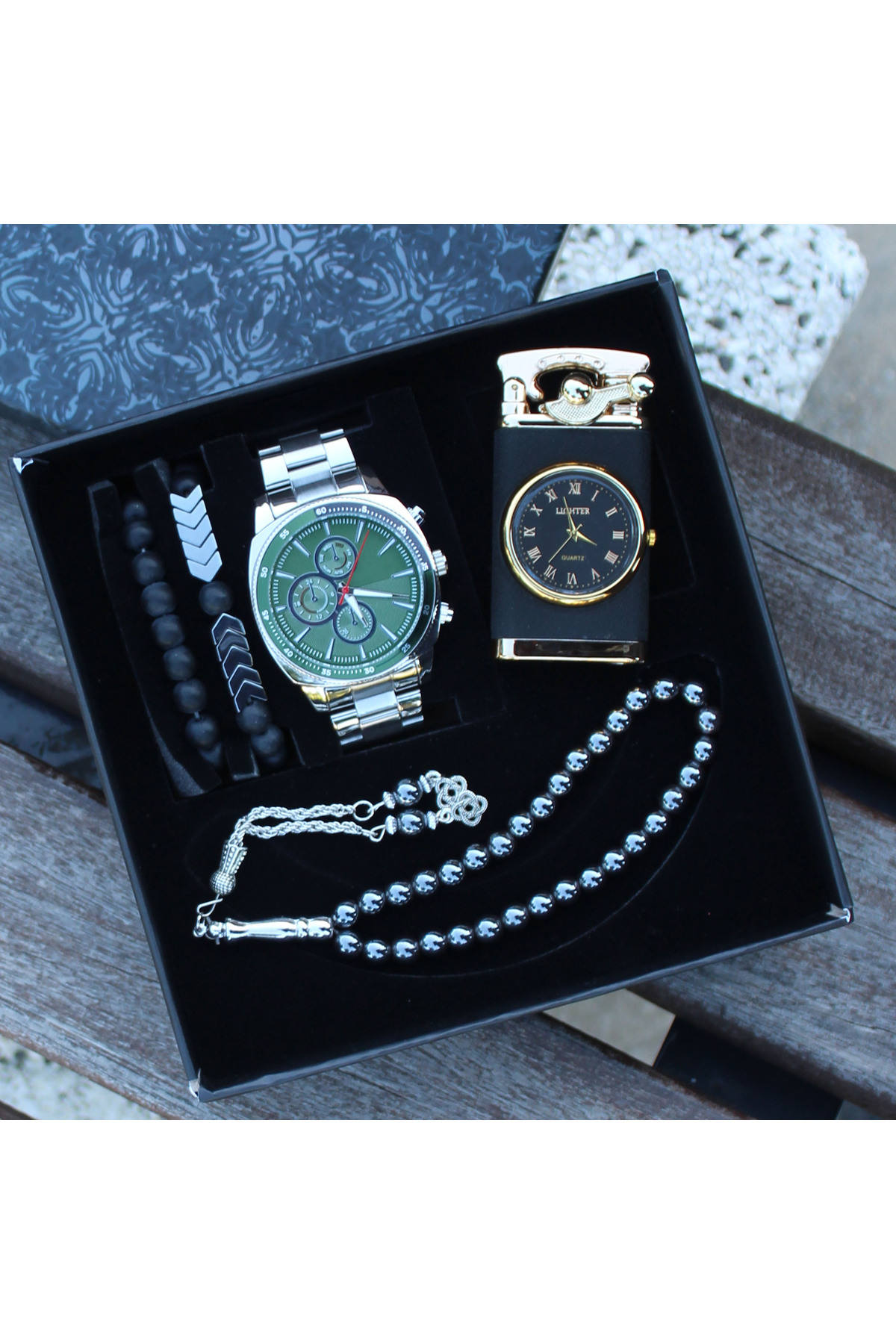 Metal Kordon Saat Tesbih Bileklik Çakmak Seti Babalar Günü Hediyesi Metal Kordon Saat Tesbih Bileklik Çakmak Seti Babalar Günü Hediyesi tg741 تک سایز