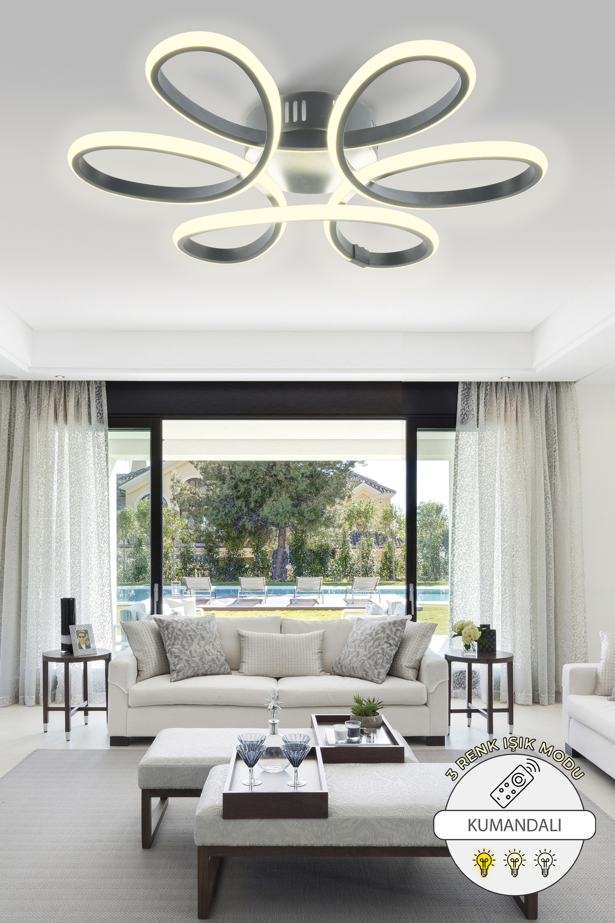Rita Kumandalı 3 Renk Işık Özellikli Modern Krom Plafonyer Led Avize Salon Rita Kumandalı 3 Renk Işık Özellikli Modern Krom Plafonyer Led Avize Salon تک سایز