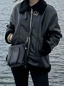 Kadın Deri İçi Kürklü Mont Parlak Siyah 3451-2303 Kadın Deri İçi Kürklü Mont Parlak Siyah 3451-2303 E3451-2303 L