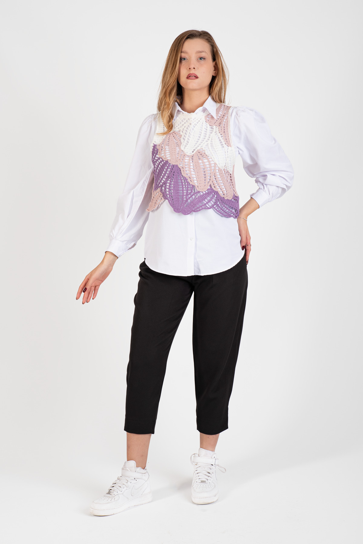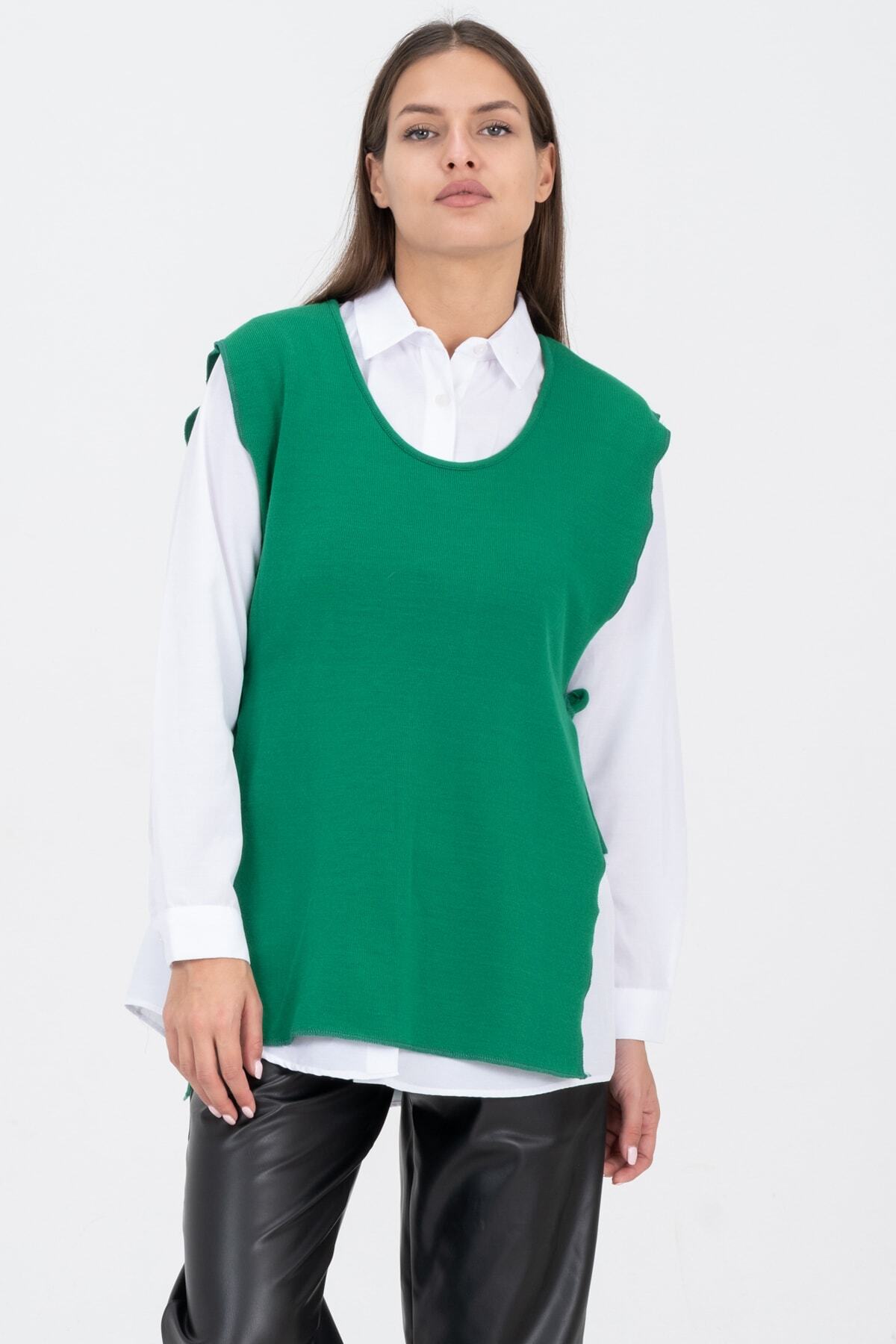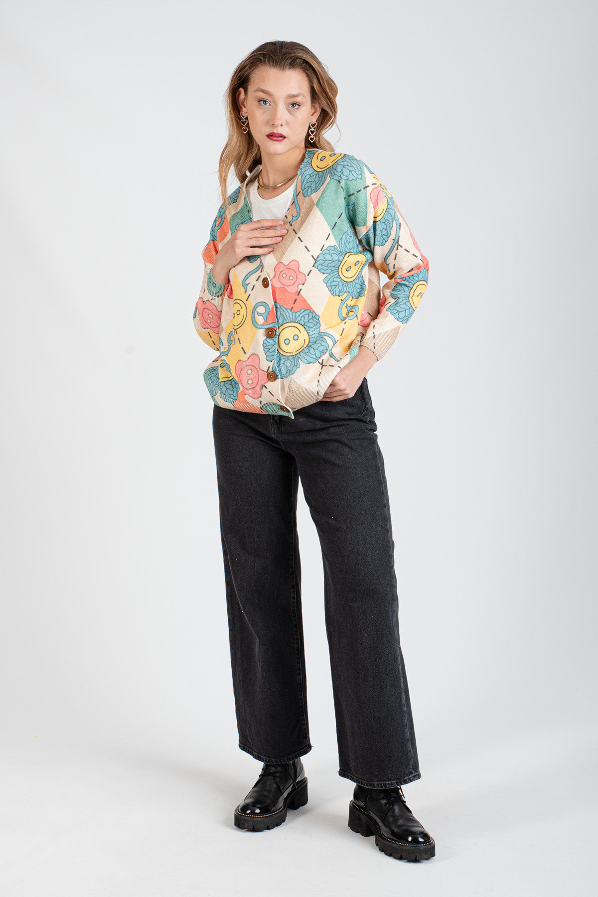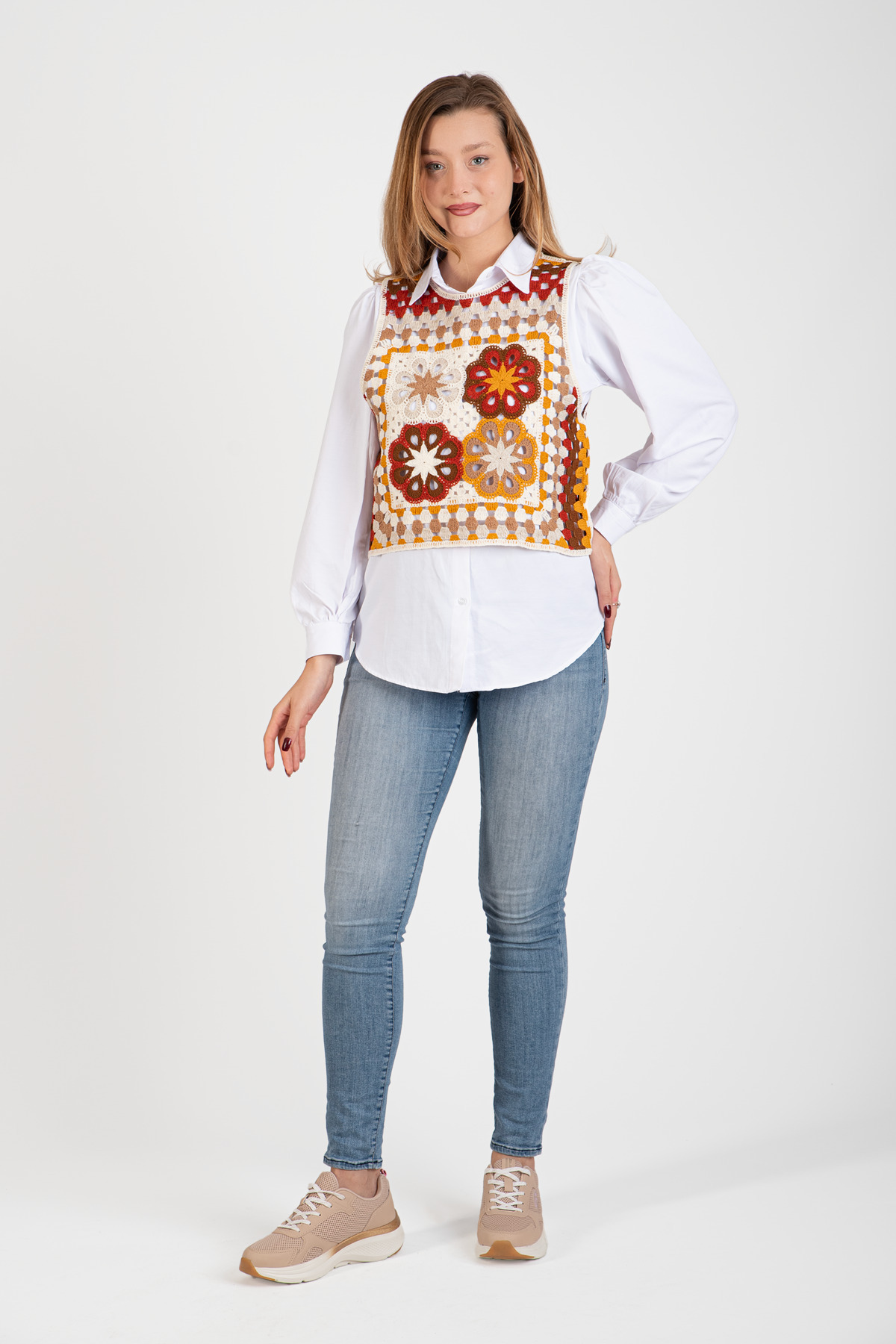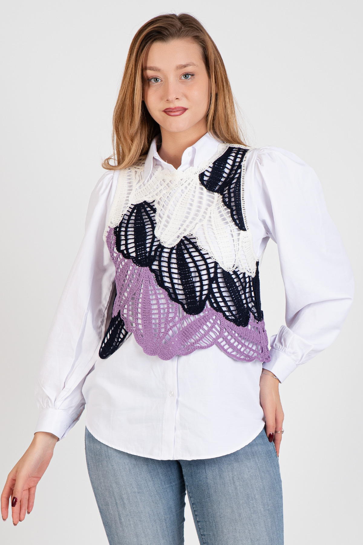 HatunAtila Üç Renkli Dantel Motifli Süveter - 5071 HatunAtila Üç Renkli Dantel Motifli Süveter - 5071 Standart