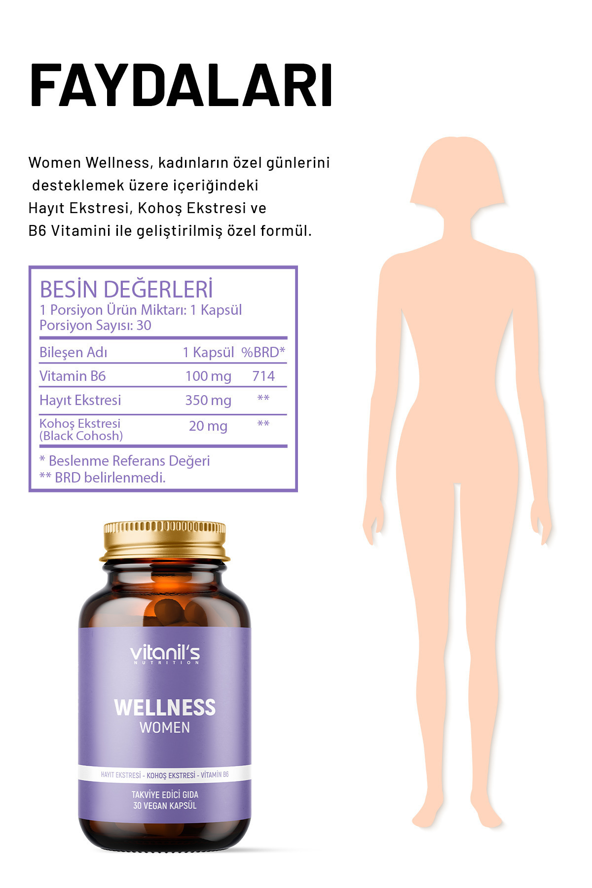 Women Wellness (Hayıt Ekstresi, Kohoş Ekstresi, B6 Vitamini) 30 Kapsül Women Wellness (Hayıt Ekstresi, Kohoş Ekstresi, B6 Vitamini) 30 Kapsül VTC19 تک سایز
