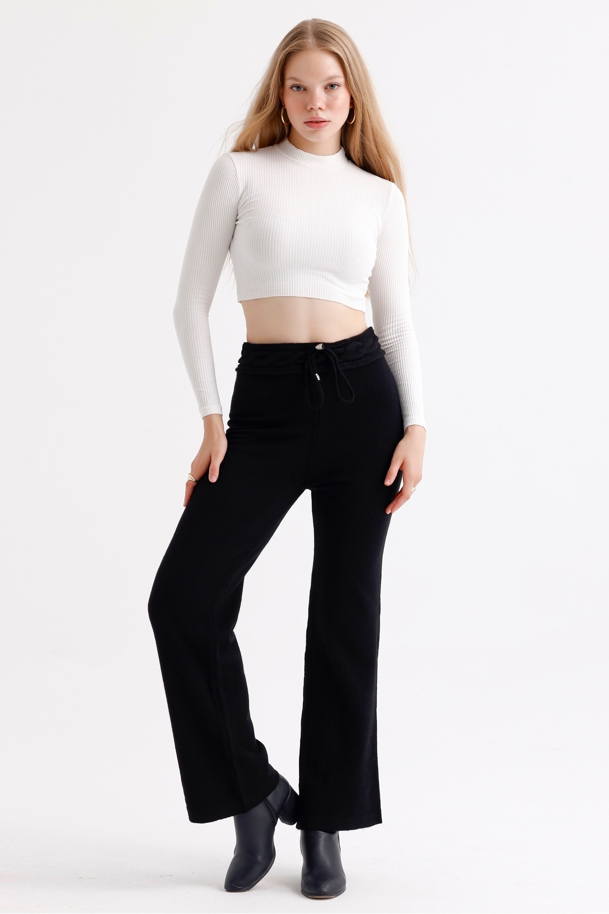 Kadın Yüksek Bel Detaylı Bağcıklı Triko Pantolon Kadın Yüksek Bel Detaylı Bağcıklı Triko Pantolon MDTRN30758 Standart