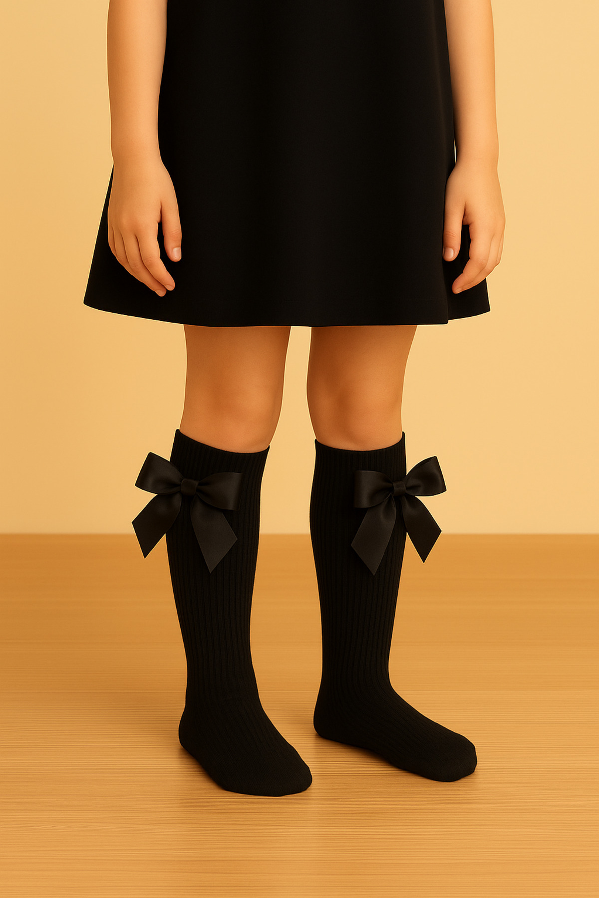 Kız Çocuk Fiyonklu Dizaltı Çorap Siyah Kız Çocuk Fiyonklu Dizaltı Çorap Siyah 12401G2289 34-36
