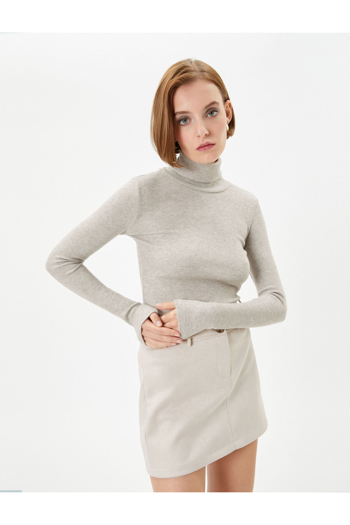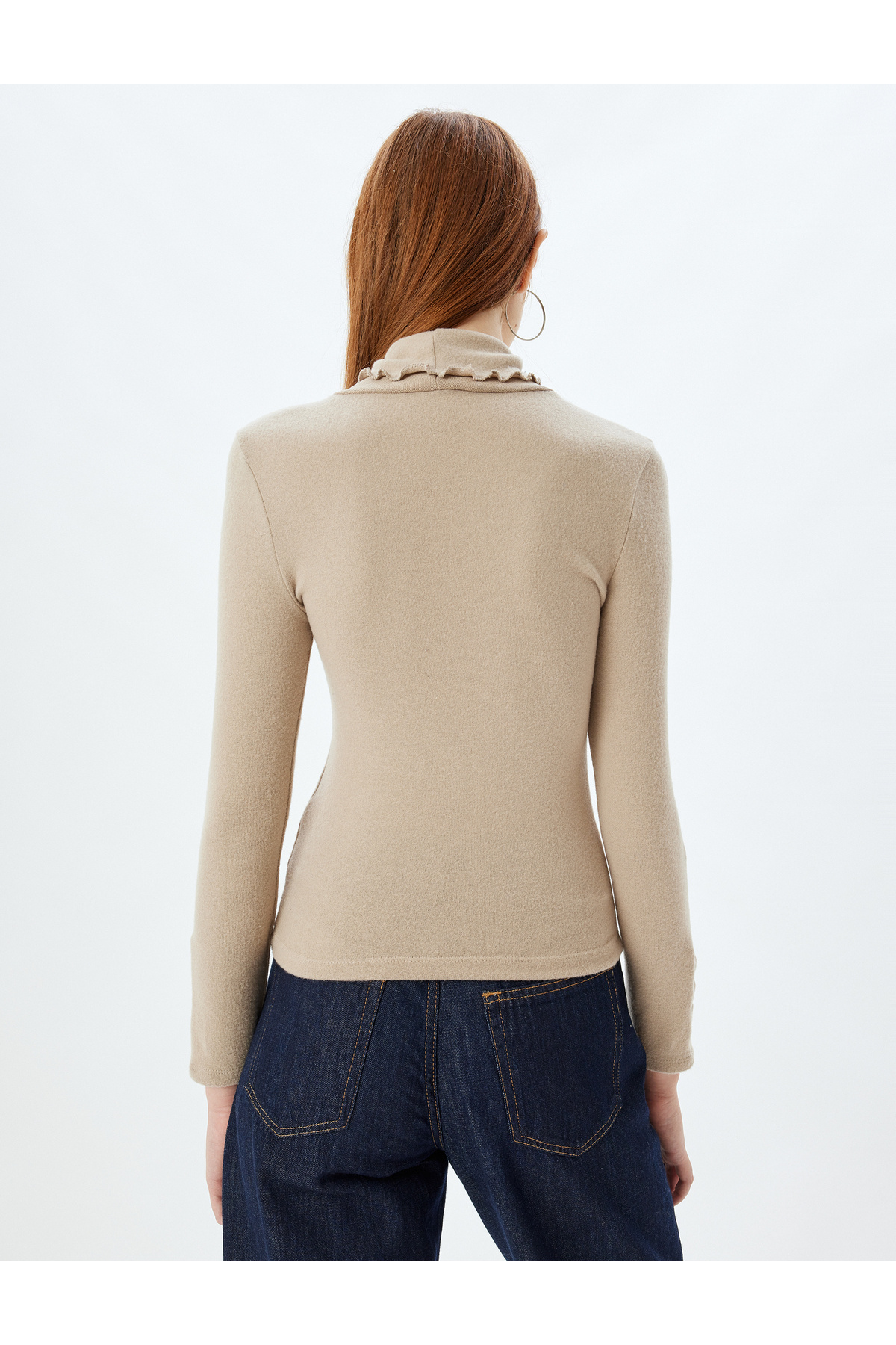 Balıkçı Yaka Triko Tişört Yumuşak Dokulu Uzun Kollu Manşetleri Düğme Detaylı Balıkçı Yaka Triko Tişört Yumuşak Dokulu Uzun Kollu Manşetleri Düğme Detaylı 5WAK50162EK XL
