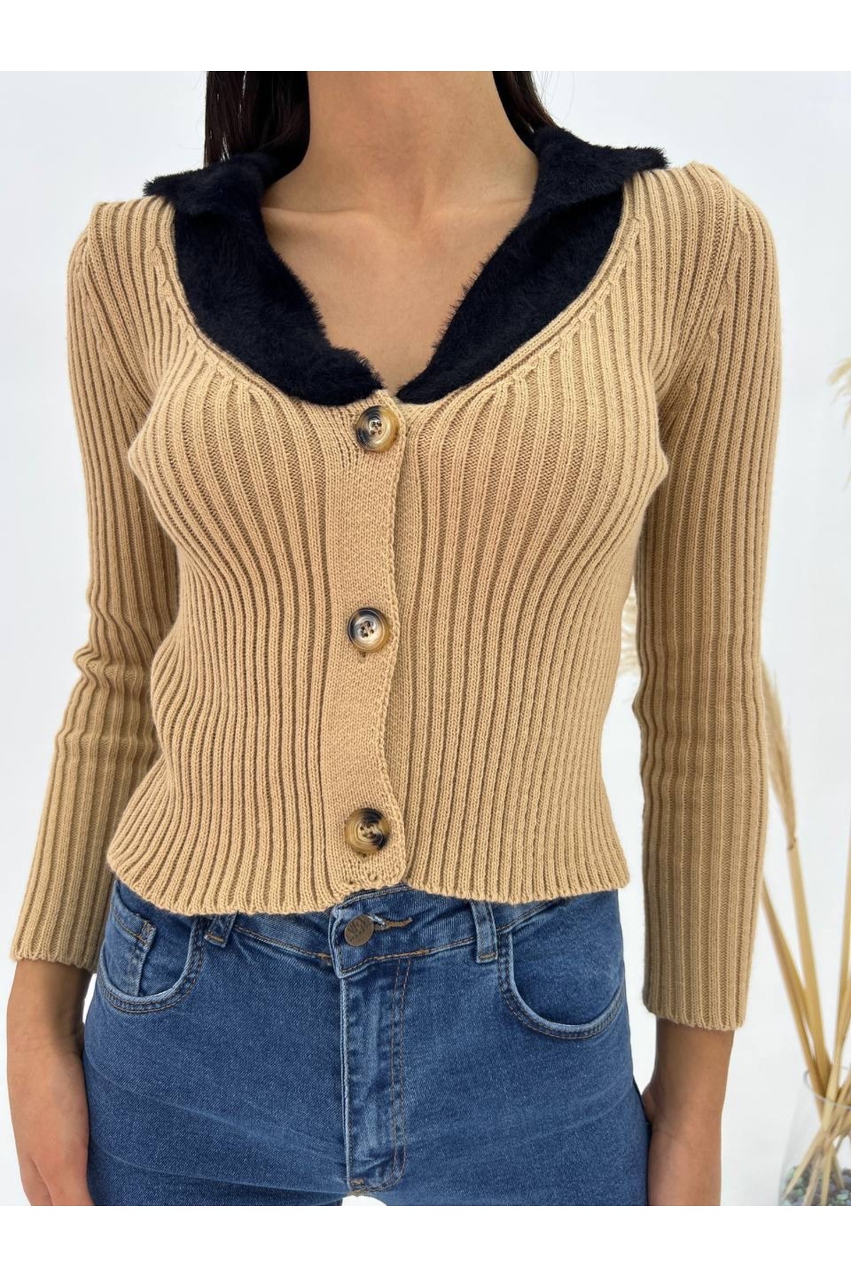 Yakası Kürk Detaylı Triko Hırka Yakası Kürk Detaylı Triko Hırka gallohrk42 Standart