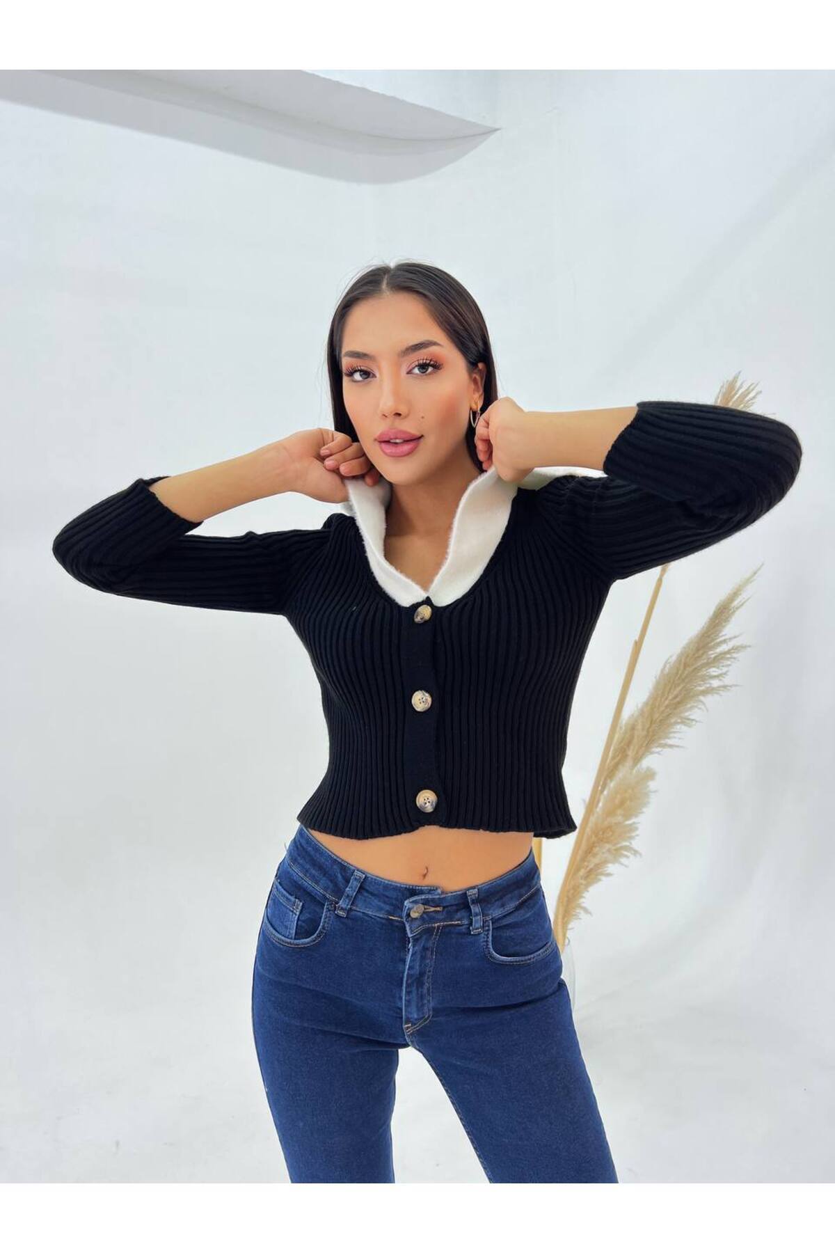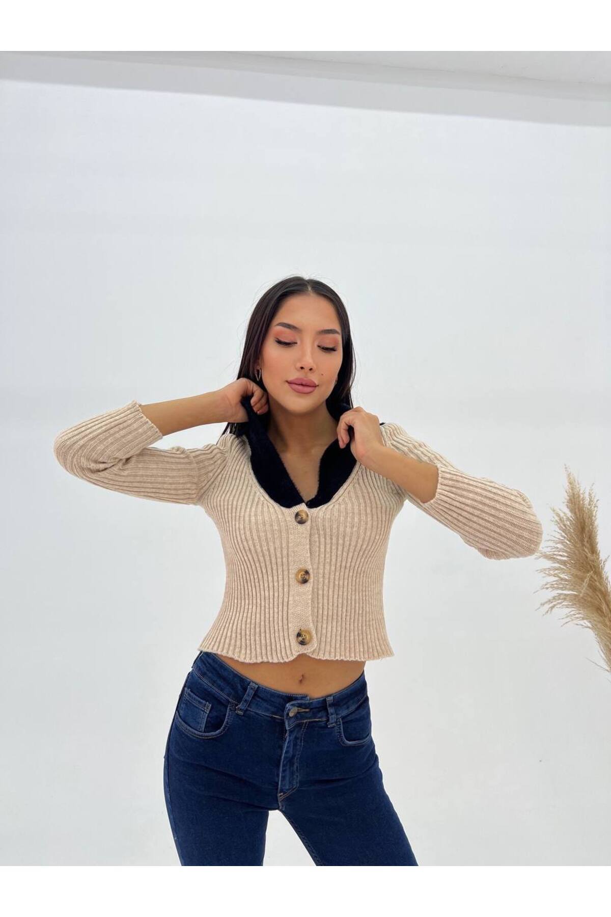 Yakası Kürk Detaylı Triko Hırka Yakası Kürk Detaylı Triko Hırka gallohrk42 Standart