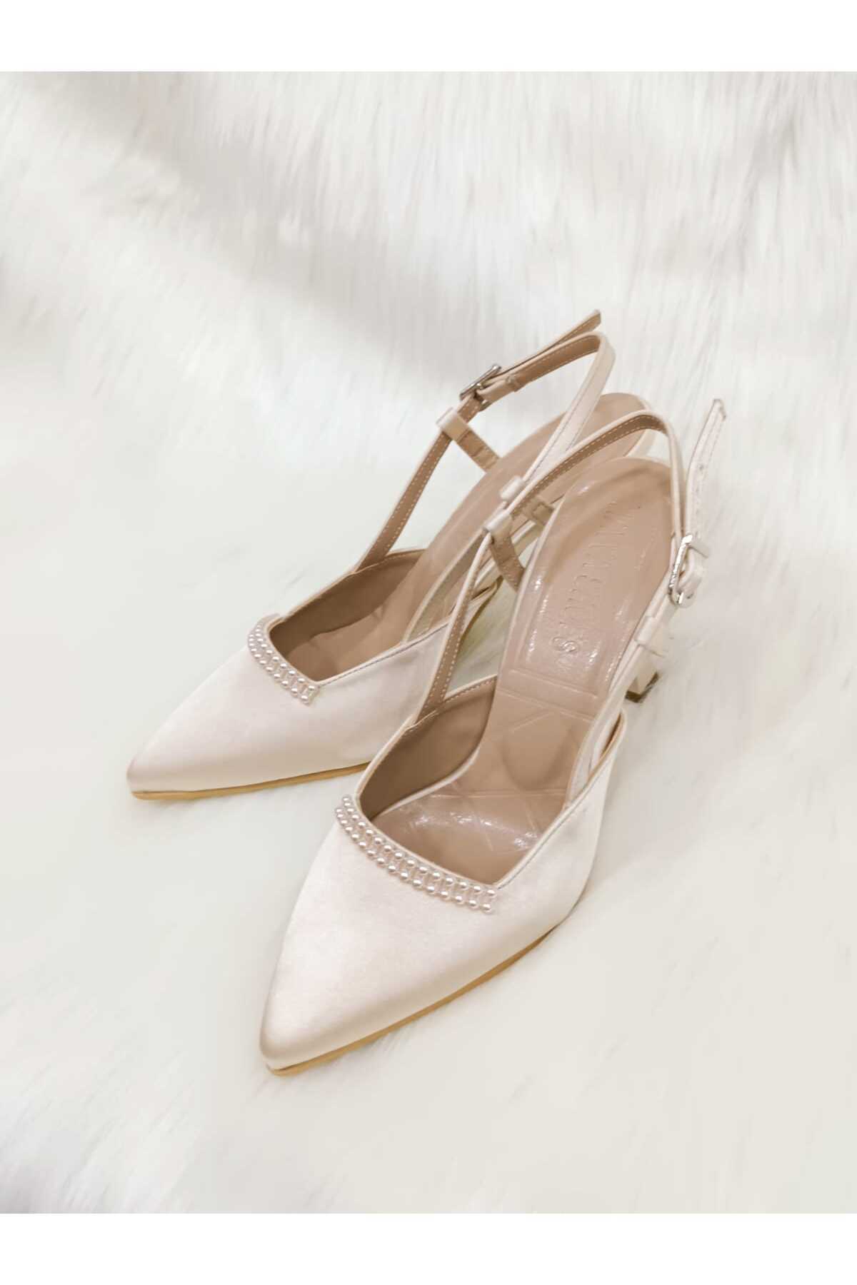Bilekten Taşlı Saten Malzeme Şampanya Topuklu Kadın Abiye Ayakkabı Bilekten Taşlı Saten Malzeme Şampanya Topuklu Kadın Abiye Ayakkabı F11 40