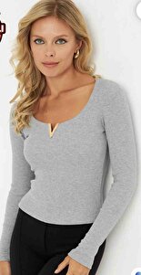 Kadın Gri Aksesuarlı Kaşkorse Bluz RLO17 Kadın Gri Aksesuarlı Kaşkorse Bluz RLO17 L