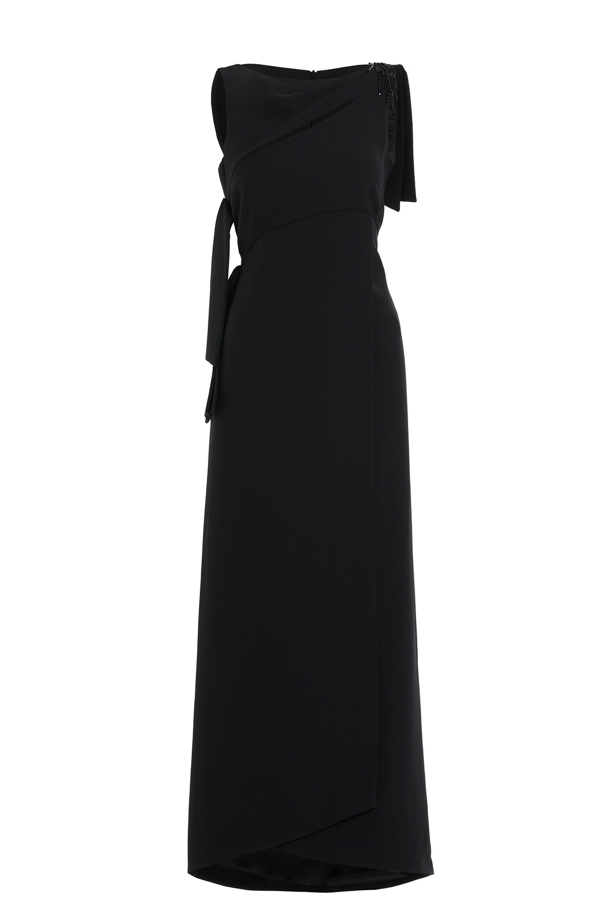 Omuz Üstü Fiyonk Detaylı Astarlı Uzun Siyah Elbise Omuz Üstü Fiyonk Detaylı Astarlı Uzun Siyah Elbise M4KM5K0501 48