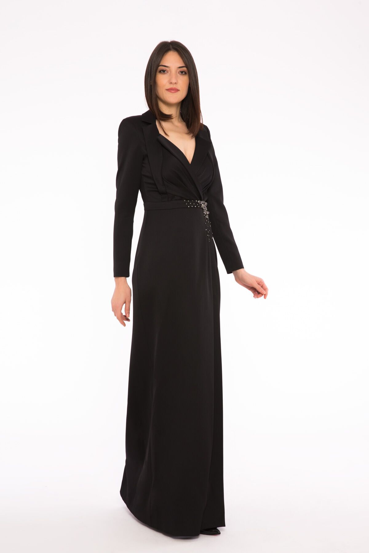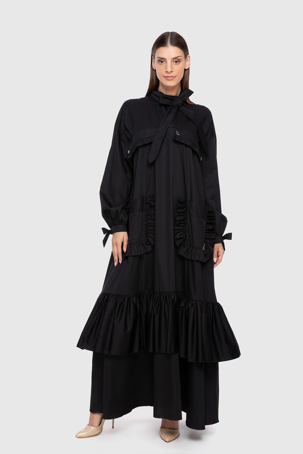 Piliseli Fiyonk Detaylı Uzun Kollu Siyah Elbise Piliseli Fiyonk Detaylı Uzun Kollu Siyah Elbise M4KM5K0321 48